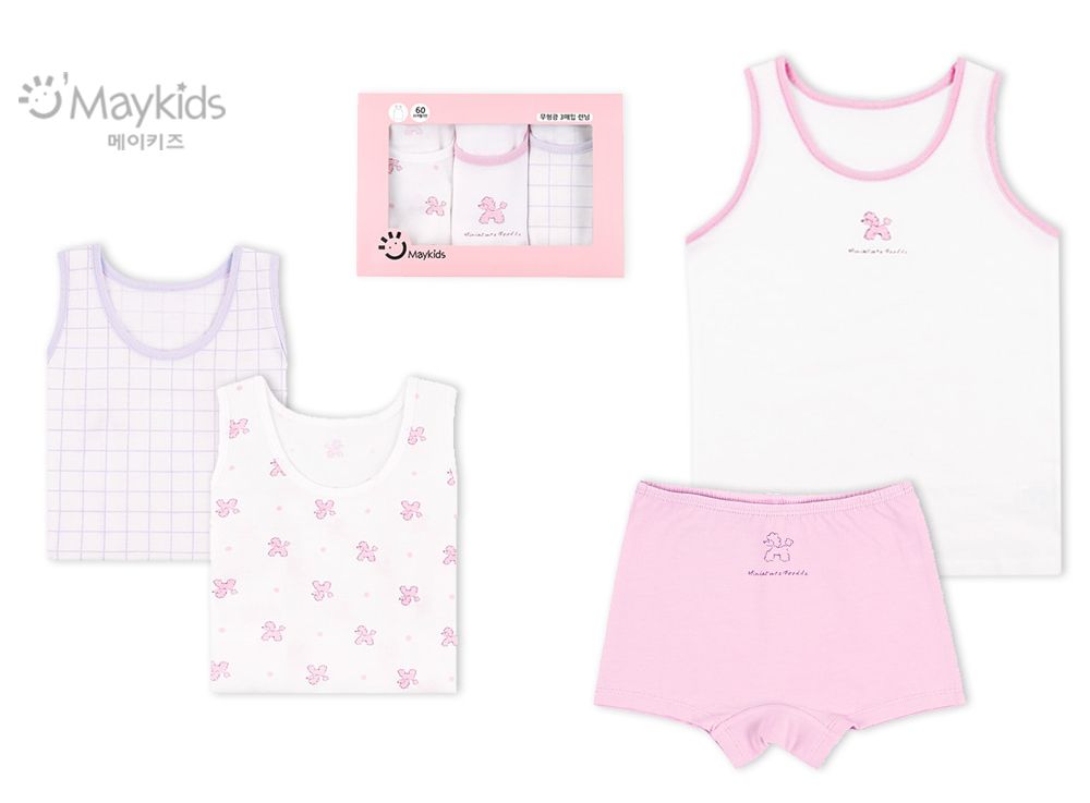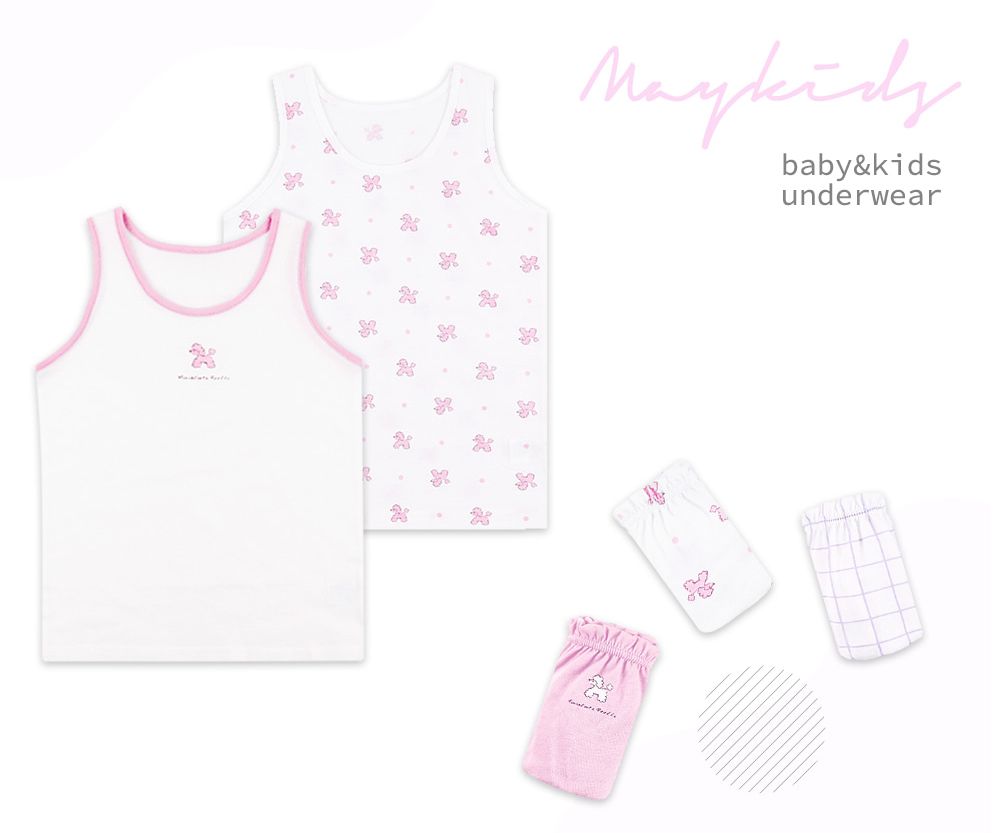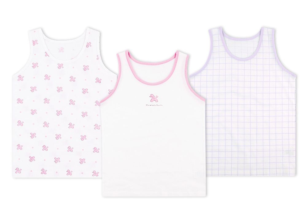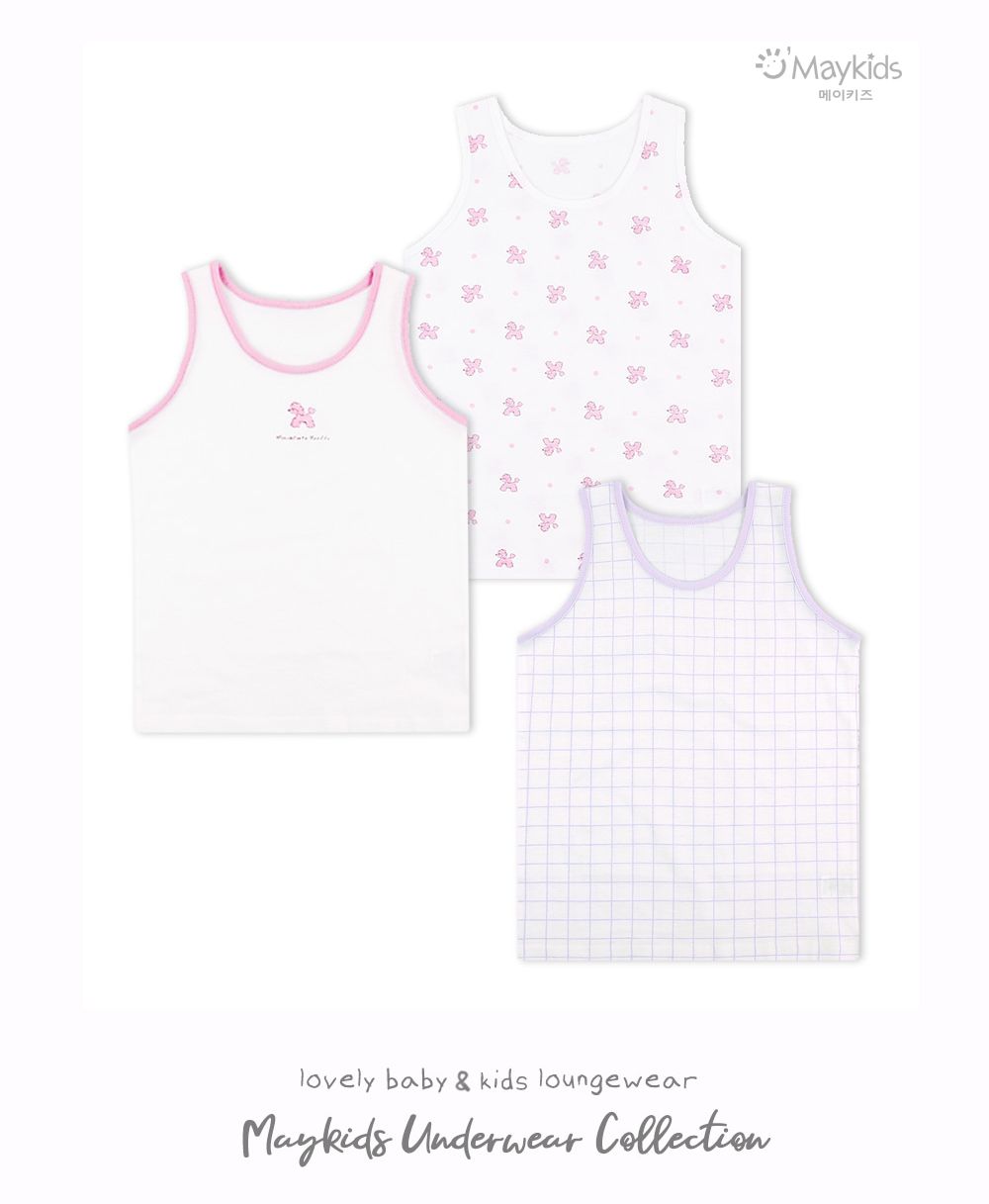 韓國 Maykids - (3入組)女寶無螢光輕柔棉背心