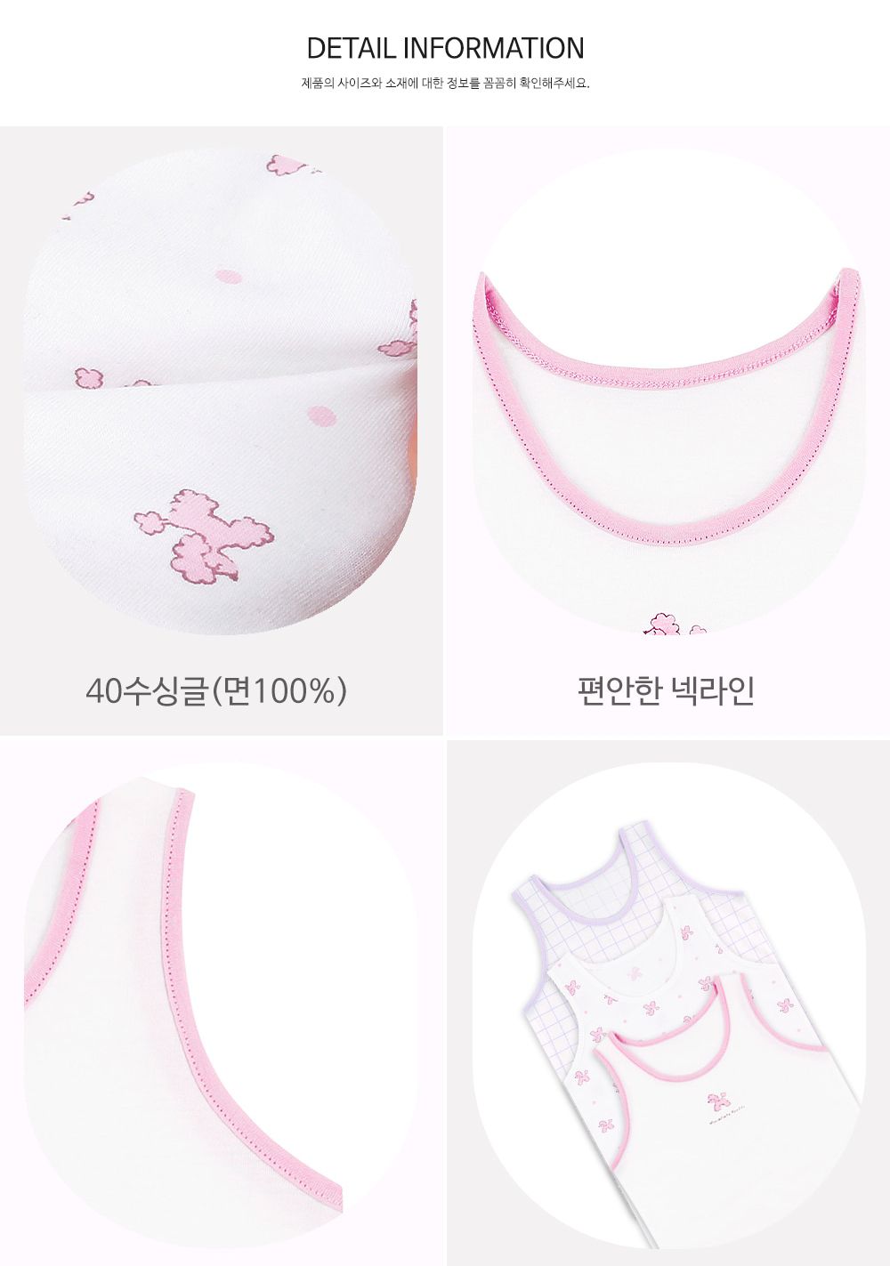 韓國 Maykids - (3入組)女寶無螢光輕柔棉背心-格紋X貴賓狗