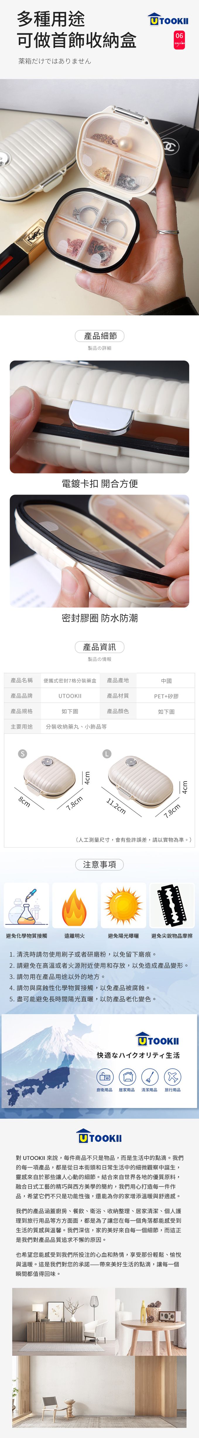 品名:便攜式密封7格分裝藥盒-S