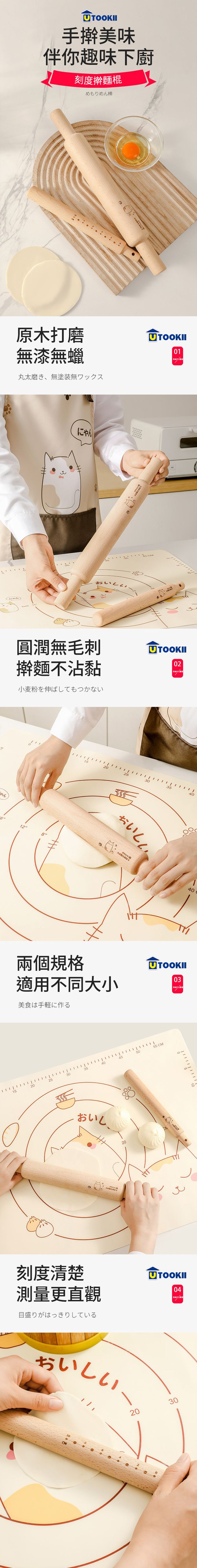 品名:可愛貓咪附刻度櫸木擀麵棍-L