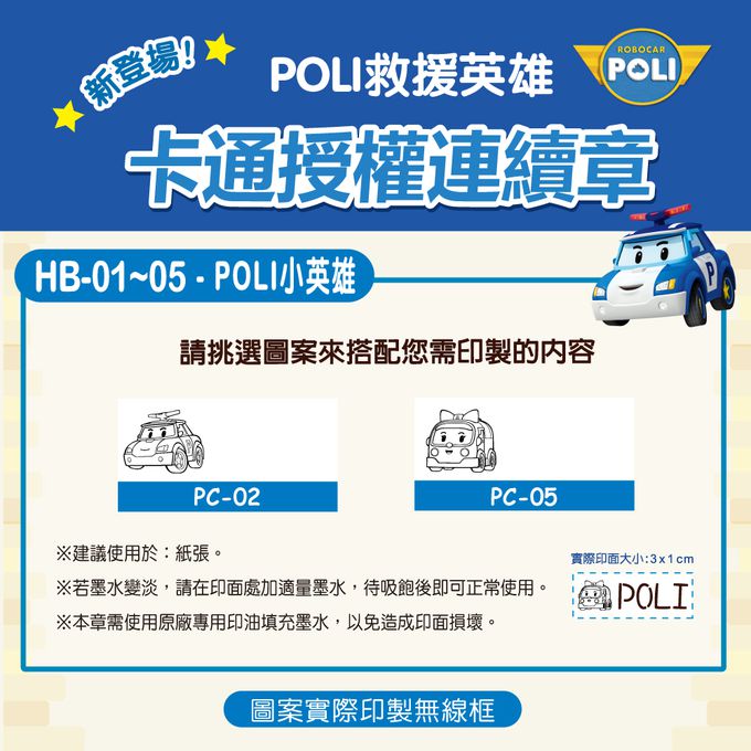 可愛卡通印章 - 彩盒連續章-POLI-HELLY(外殼黃)-紫 (3x1cm)