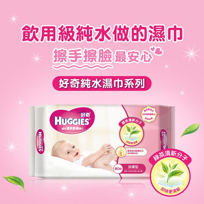 天然綠茶清爽親膚嬰兒濕巾 加厚型 80抽x3包x6組/箱