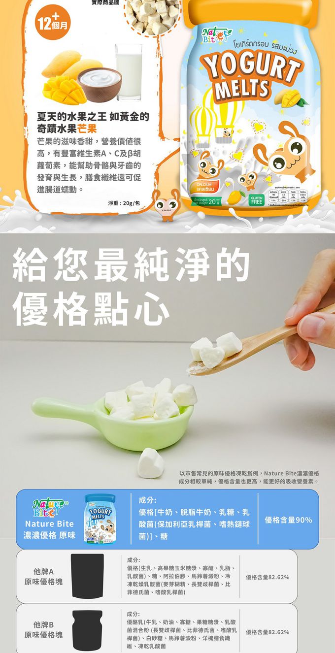 ★ 成分單純無麩質,優格含量高,爸媽安心孩子也開心
