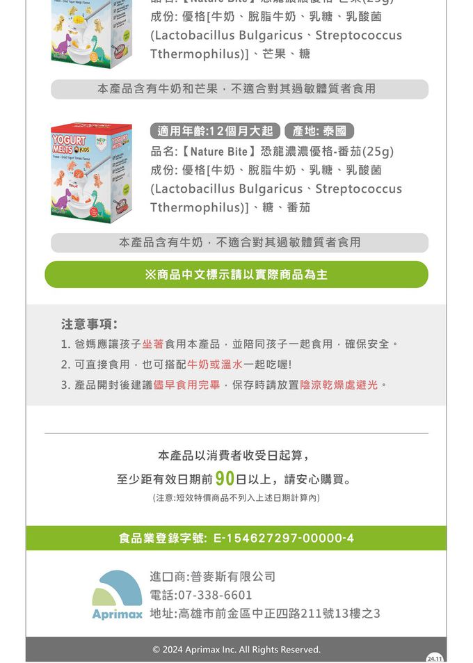 過敏原:牛奶、芒果