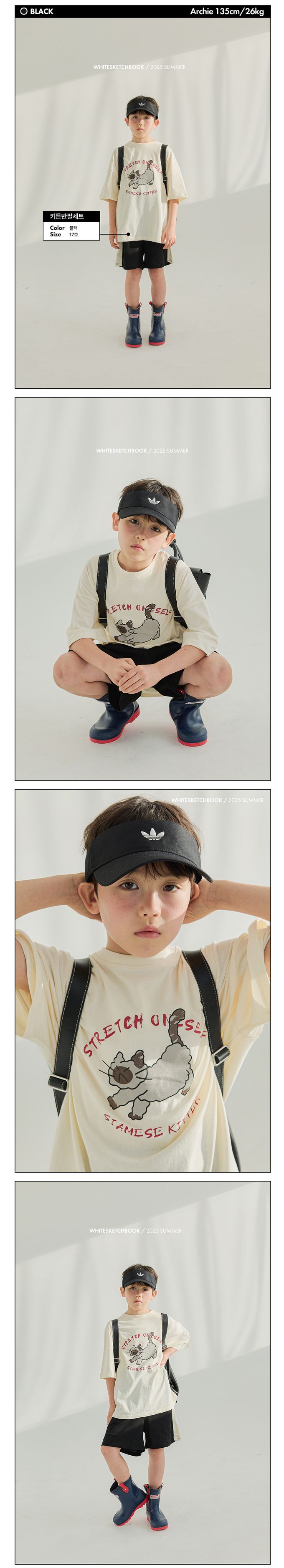 韓國 W.S.B. - 伸展貓貓純棉短袖套裝-黑