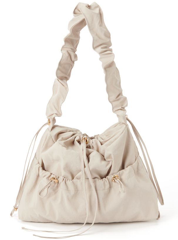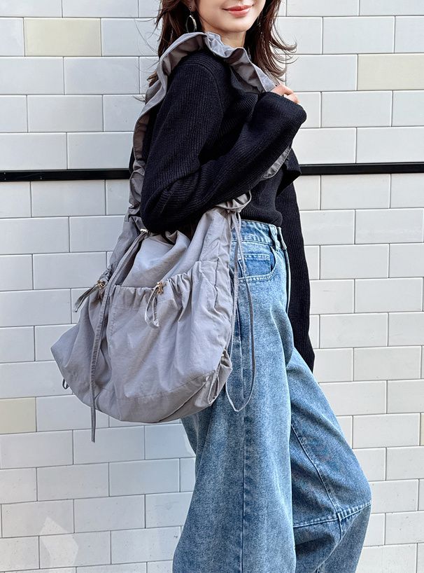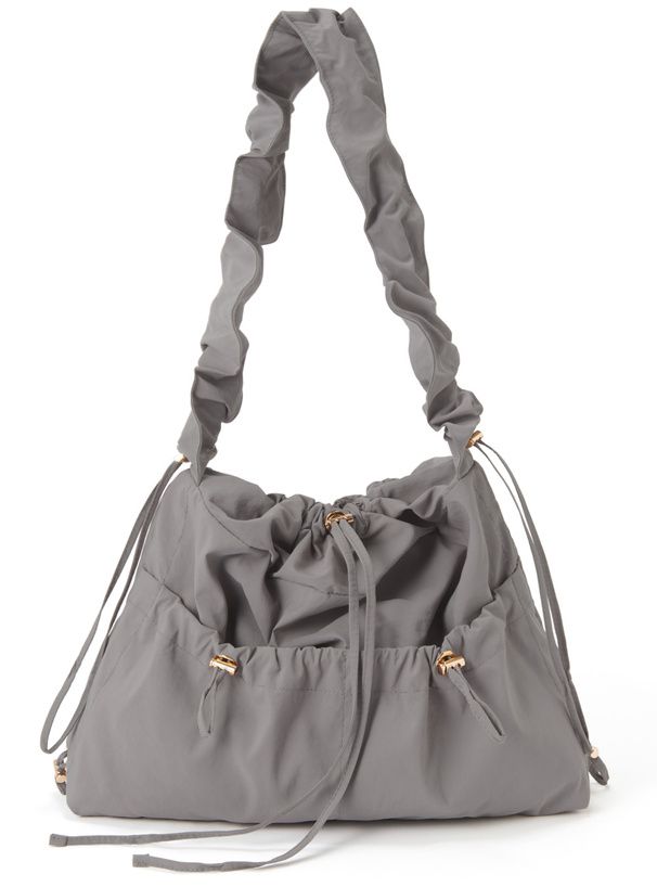 日本 GRL - 甜美皺摺率性抽繩肩背包-灰 (F)