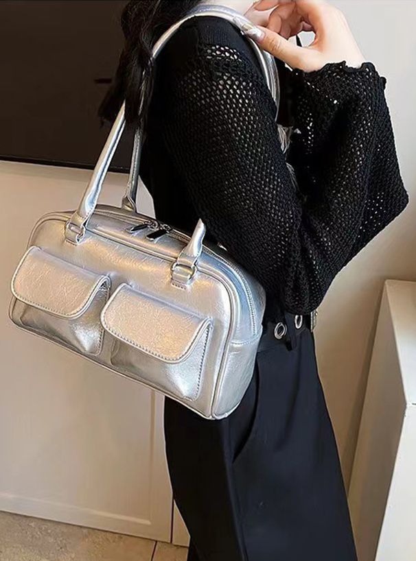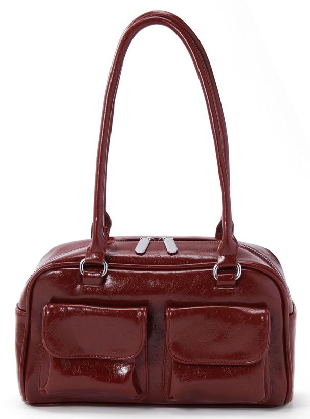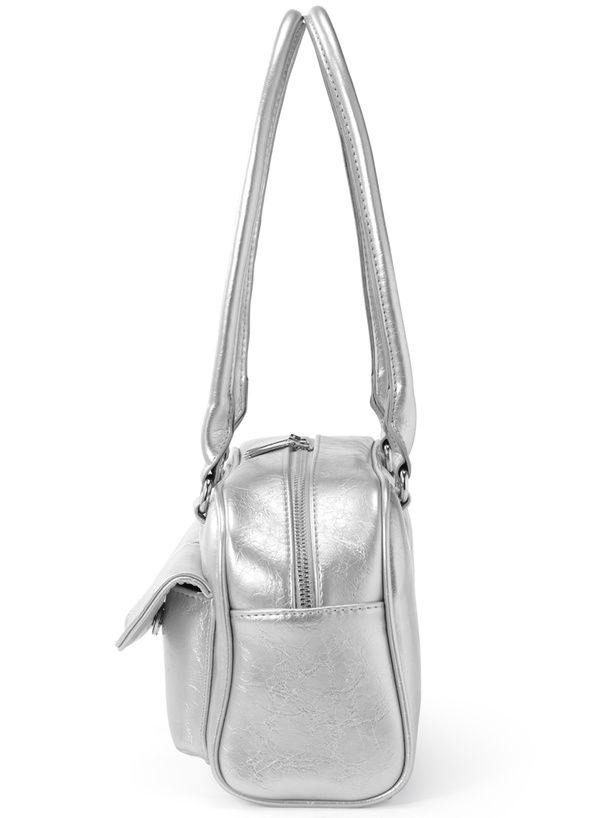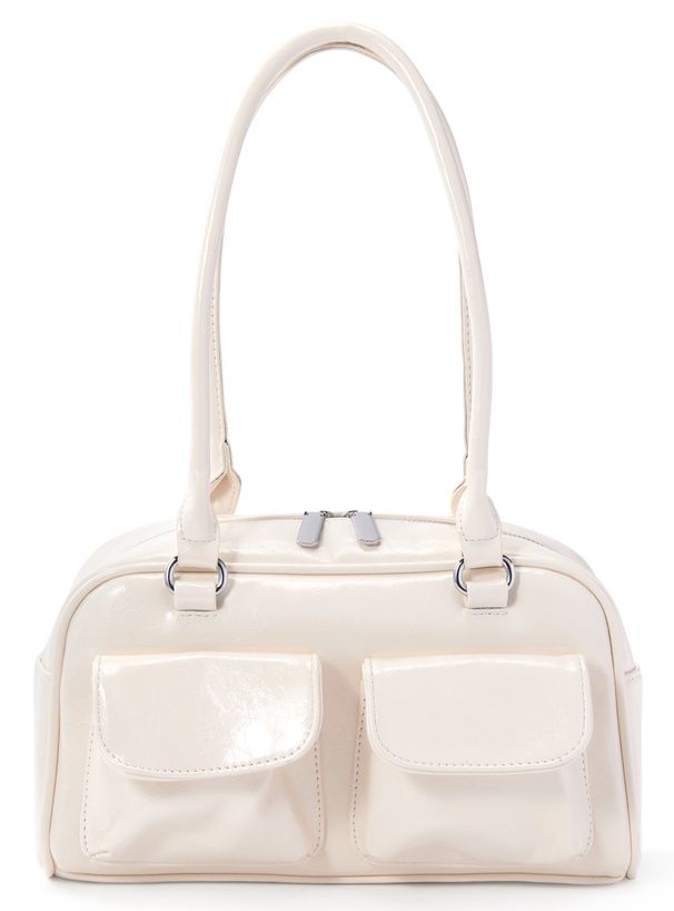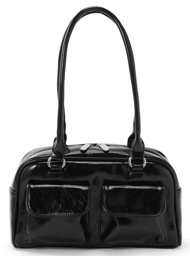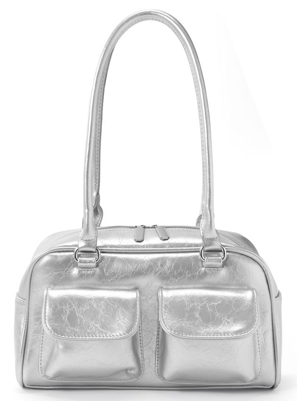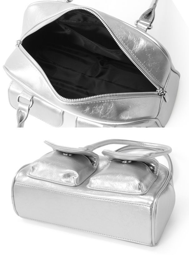 日本 GRL - 雙口袋造型漆皮亮麗波士頓包-銀灰 (F)