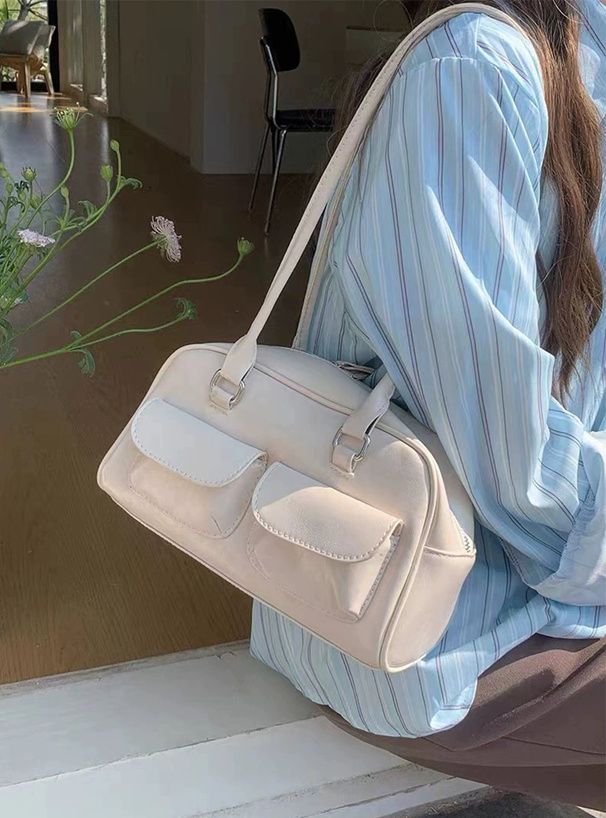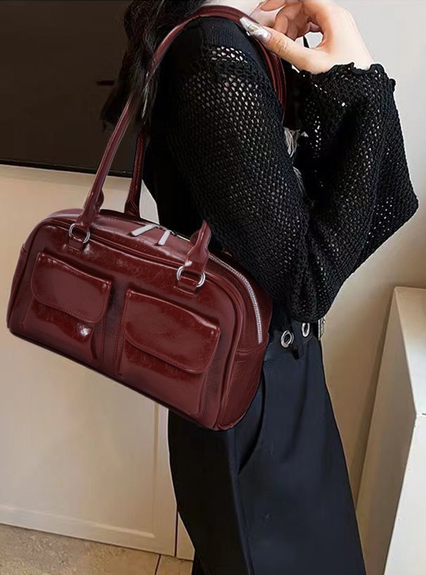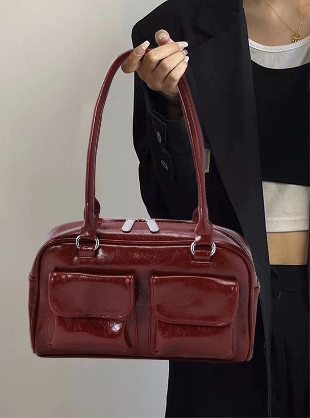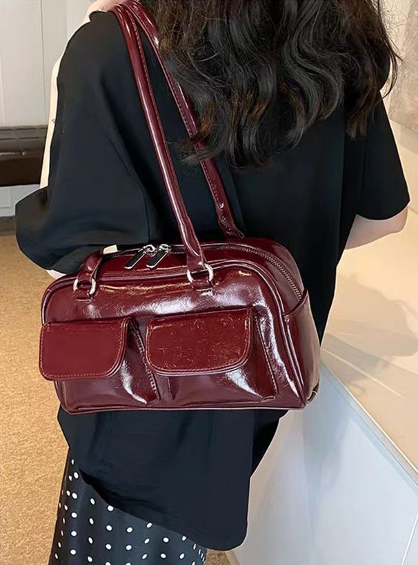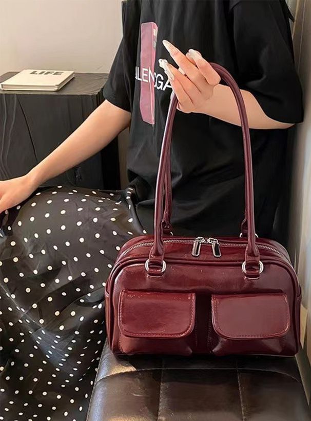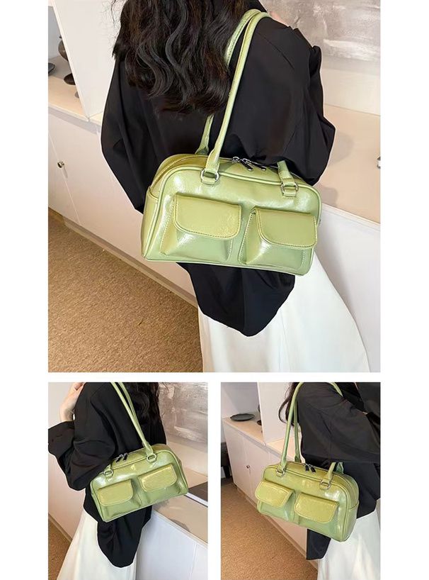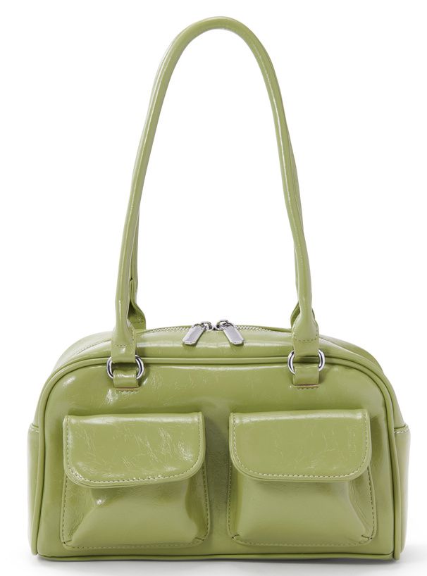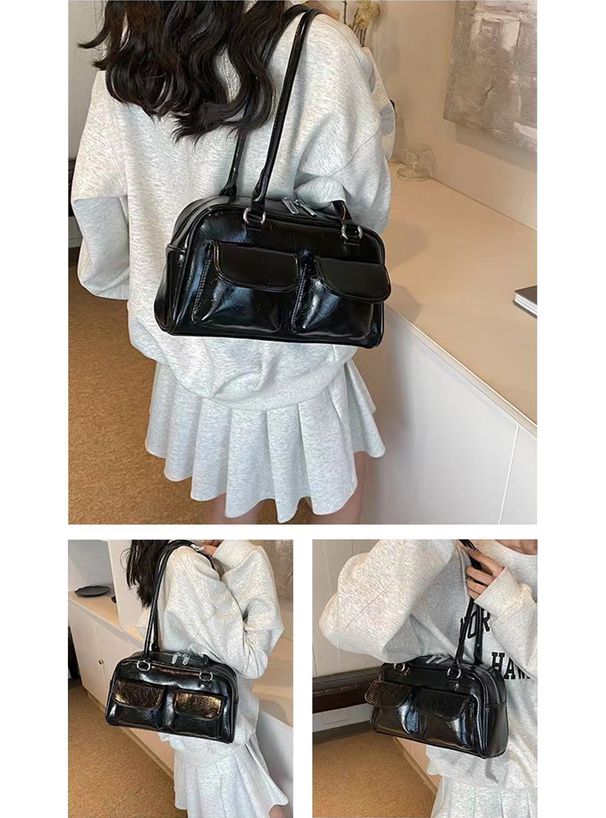日本 GRL - 雙口袋造型漆皮亮麗波士頓包-銀灰 (F)