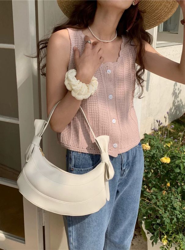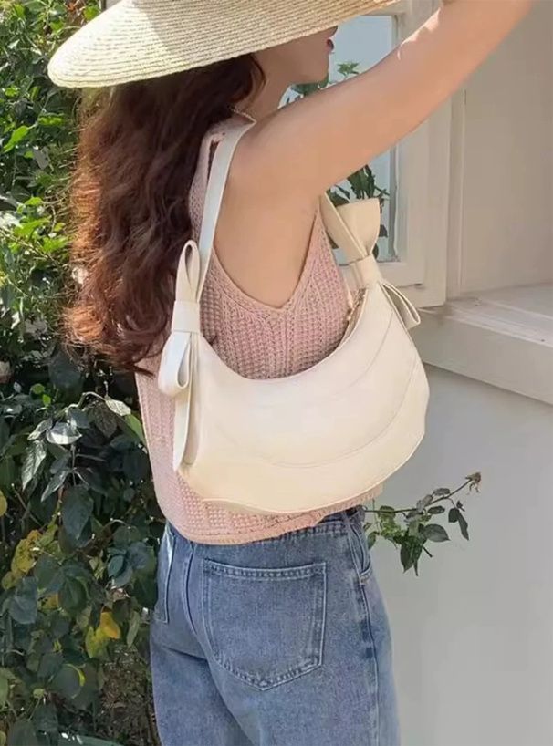 • 品名:俏麗蝴蝶結造型皮革感彎月肩背包