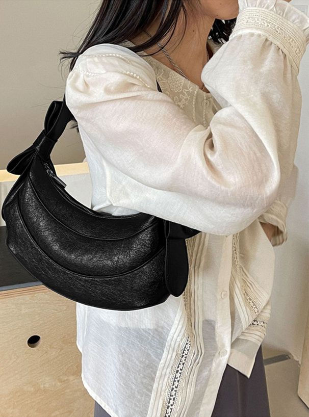 俏麗蝴蝶結造型皮革感彎月肩背包