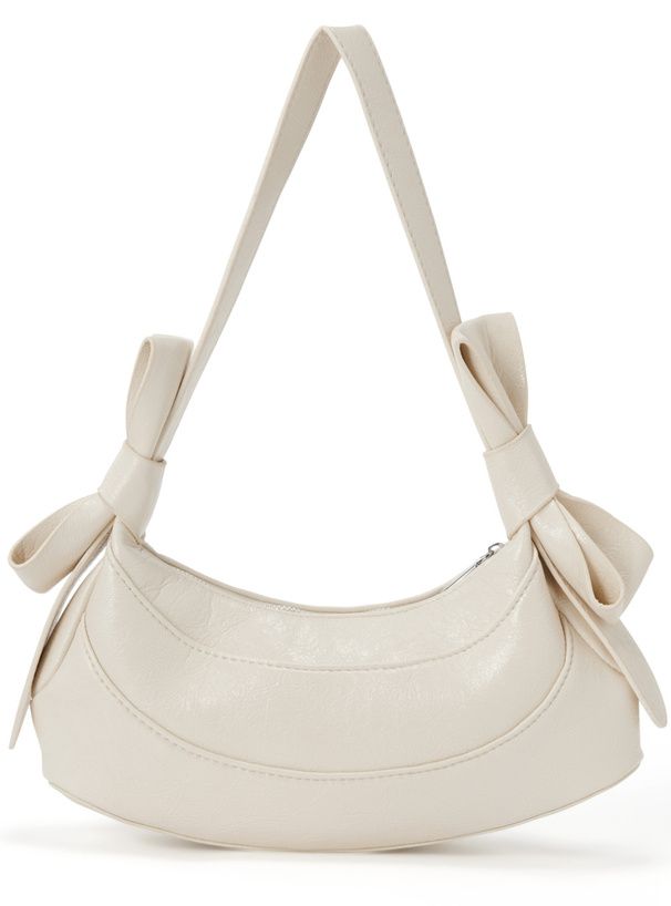 日本 GRL - 俏麗蝴蝶結造型皮革感彎月肩背包-奶白 (F)