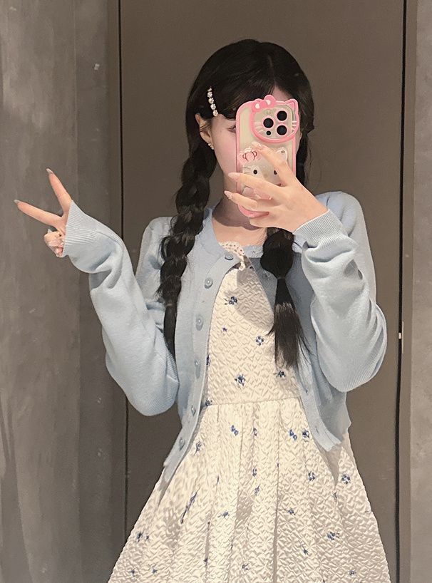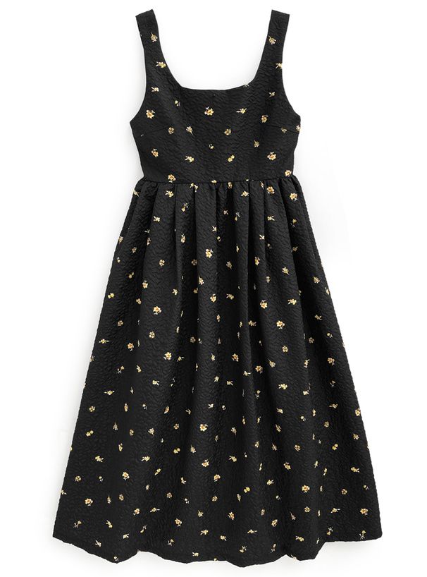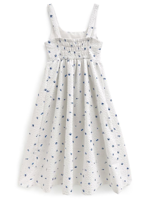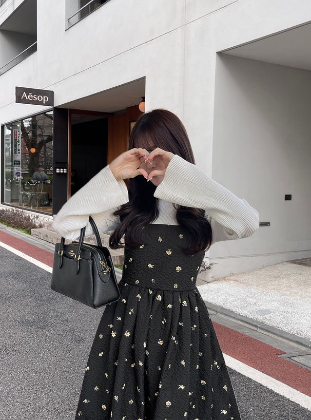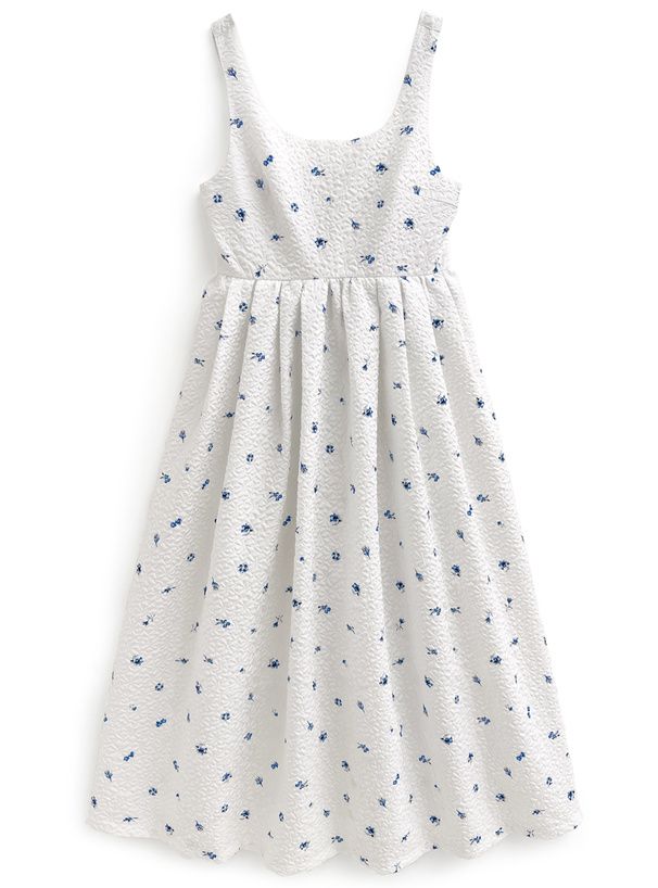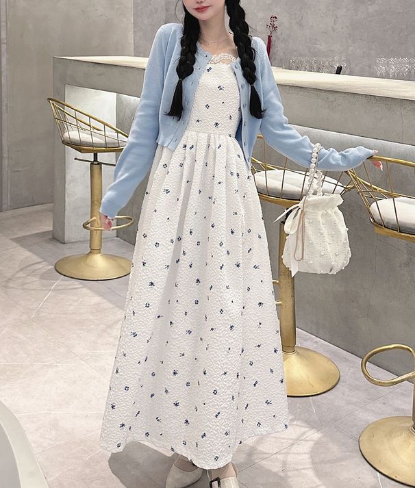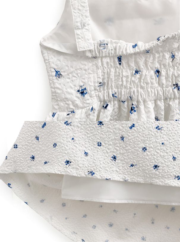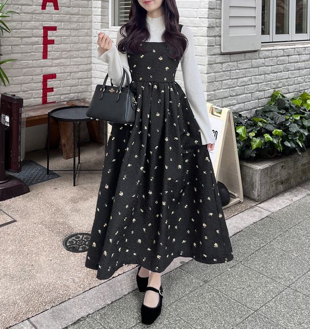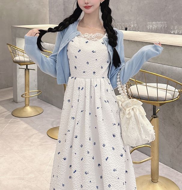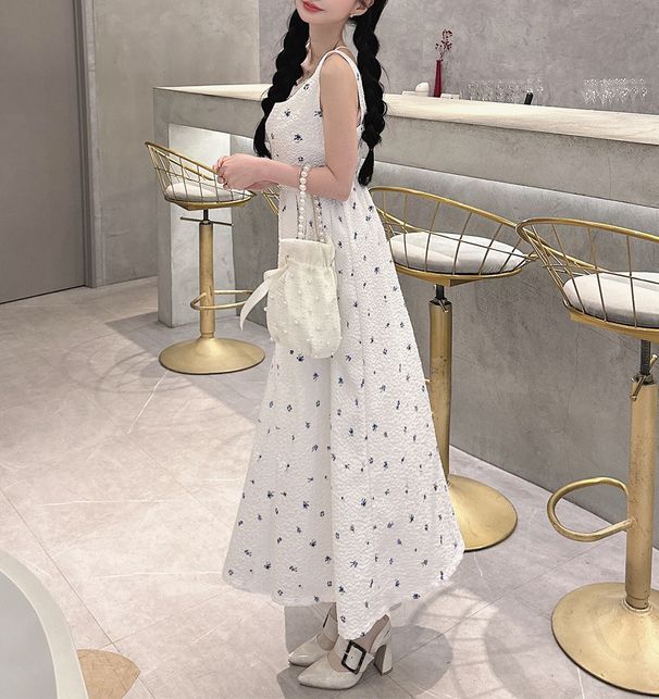甜美文藝花卉紋理細肩帶高腰洋裝