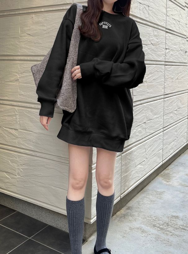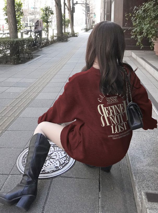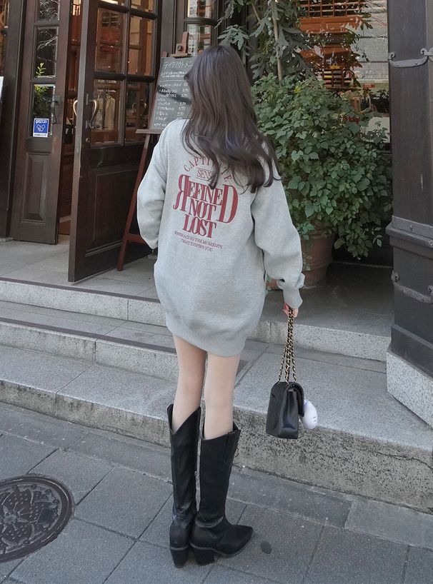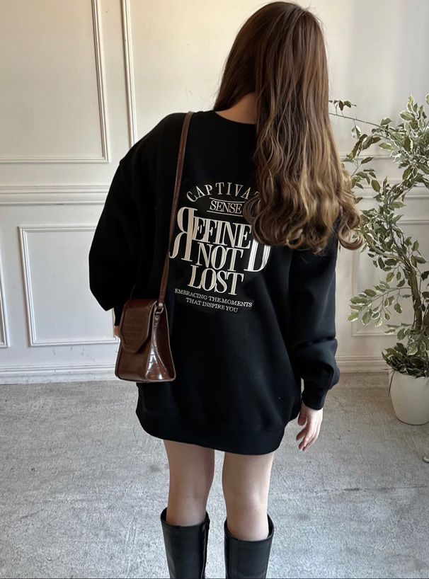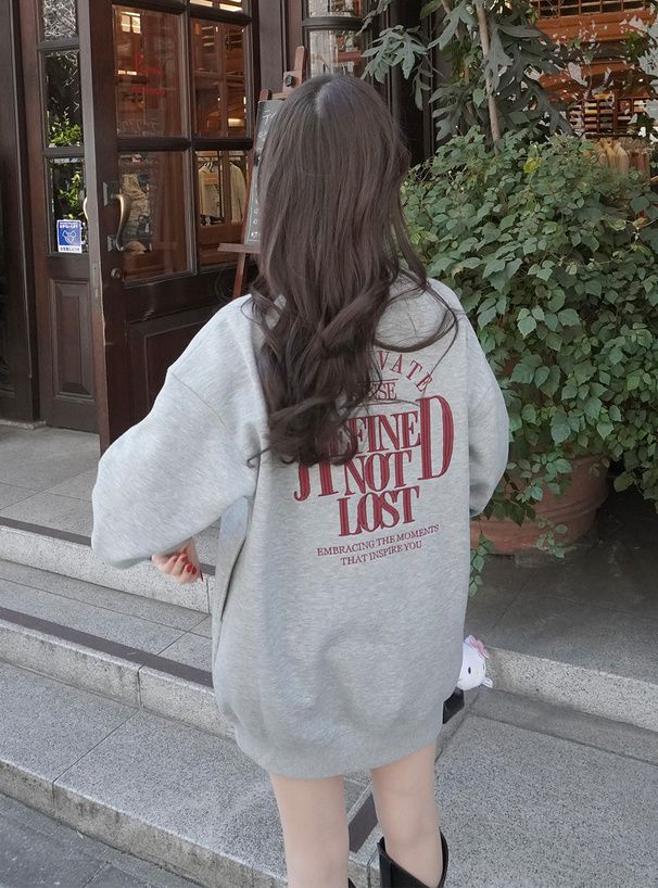 • 品名:背後學院風印花休閒長版大學T