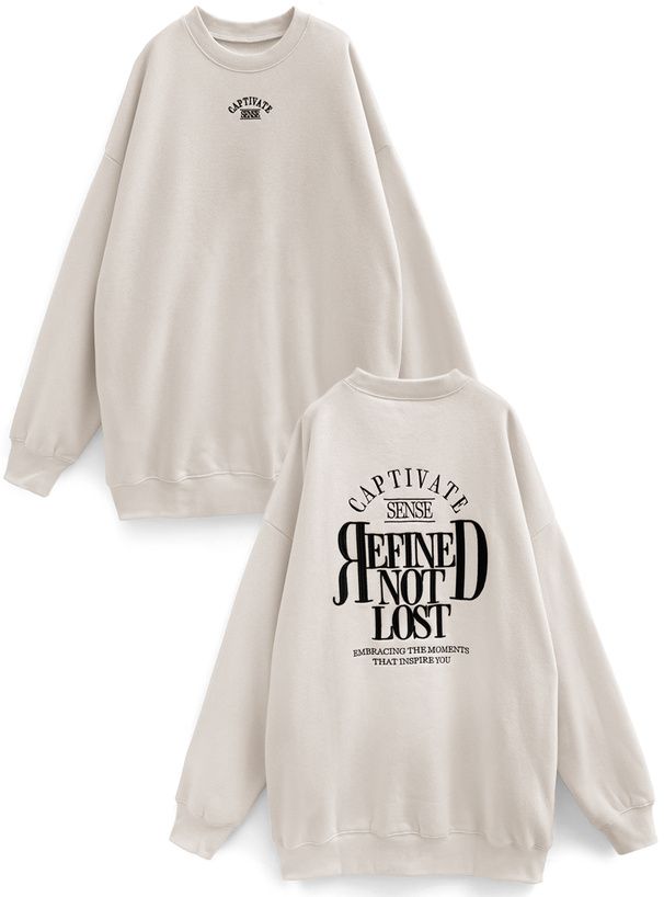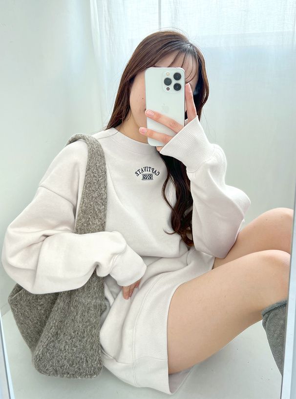 日本 GRL - 背後學院風印花休閒長版大學T-米白 (F)