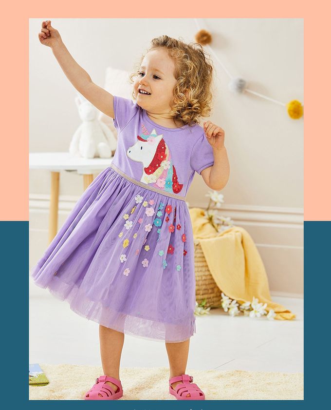 Jumping meters - 棉質圓領短袖網紗洋裝-獨角獸精靈-藍紫色