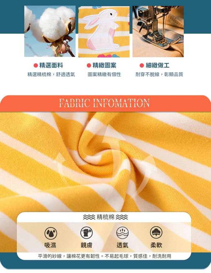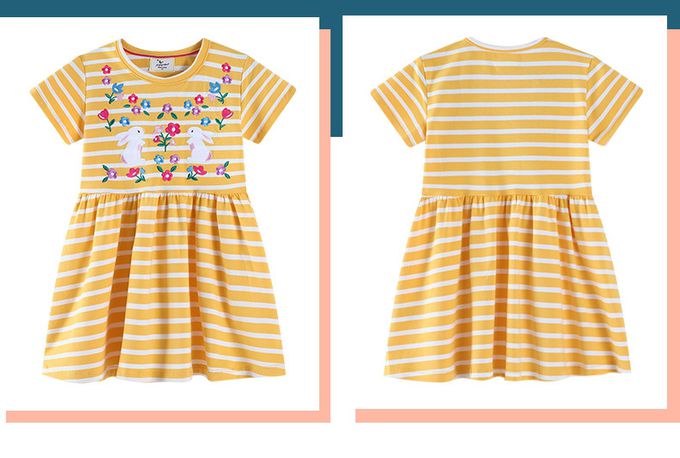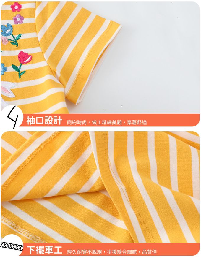 棉質圓領短袖洋裝-兔子花卉-黃色條紋