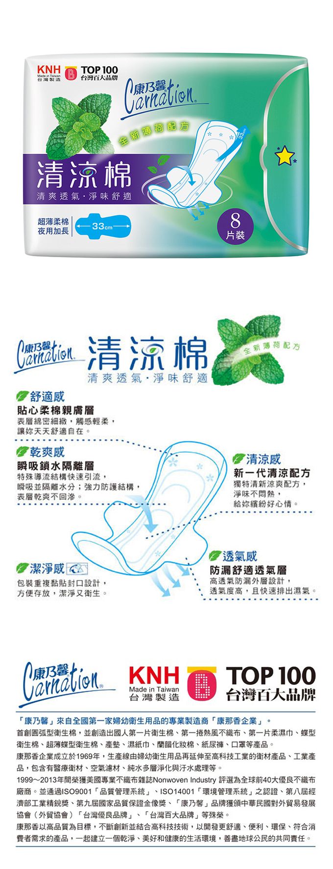 【康乃馨】清涼棉衛生棉夜用加長33cm