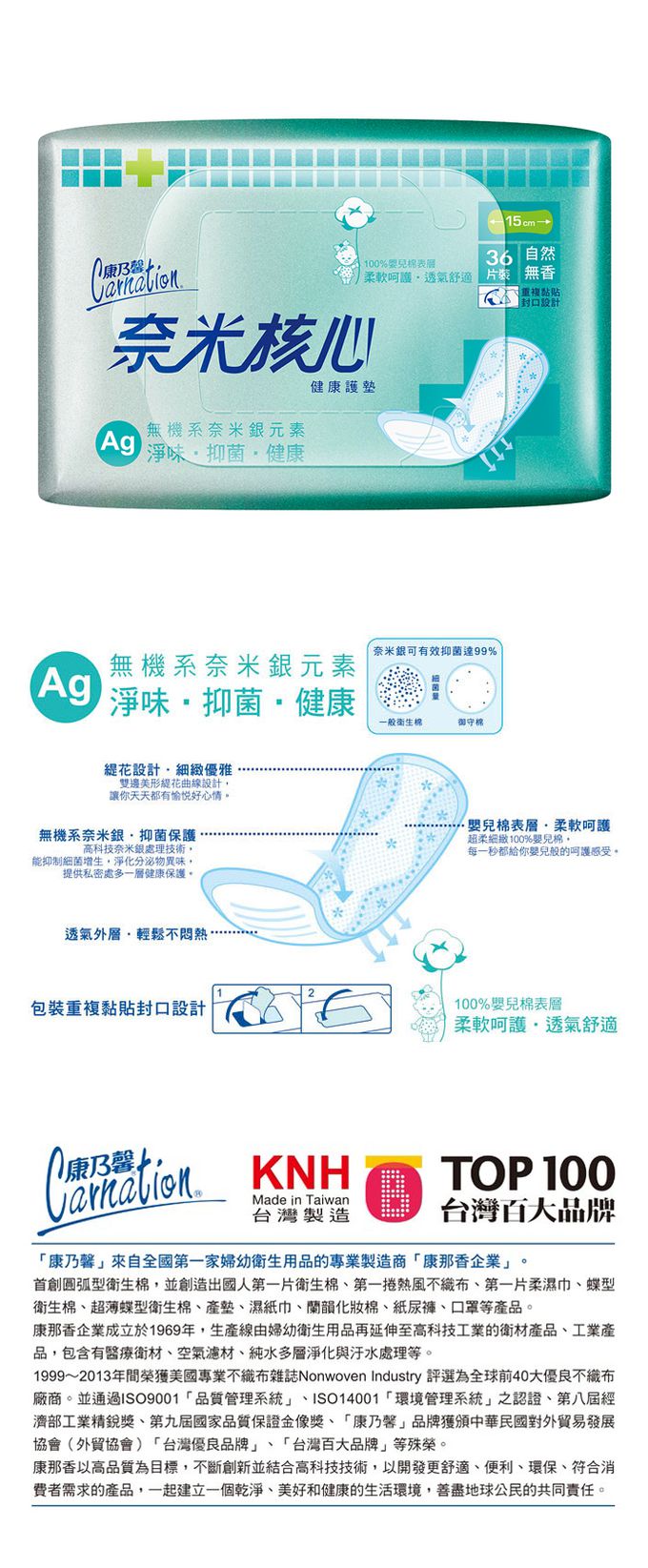 【康乃馨】奈米核心健康護墊-自然無香15cm
