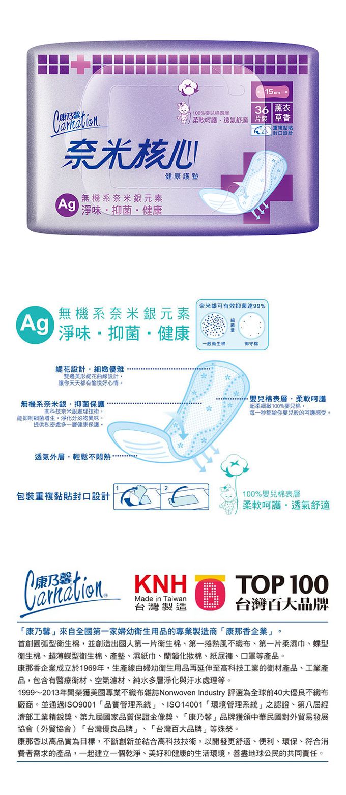 【康乃馨】奈米核心健康護墊薰衣草香15cm