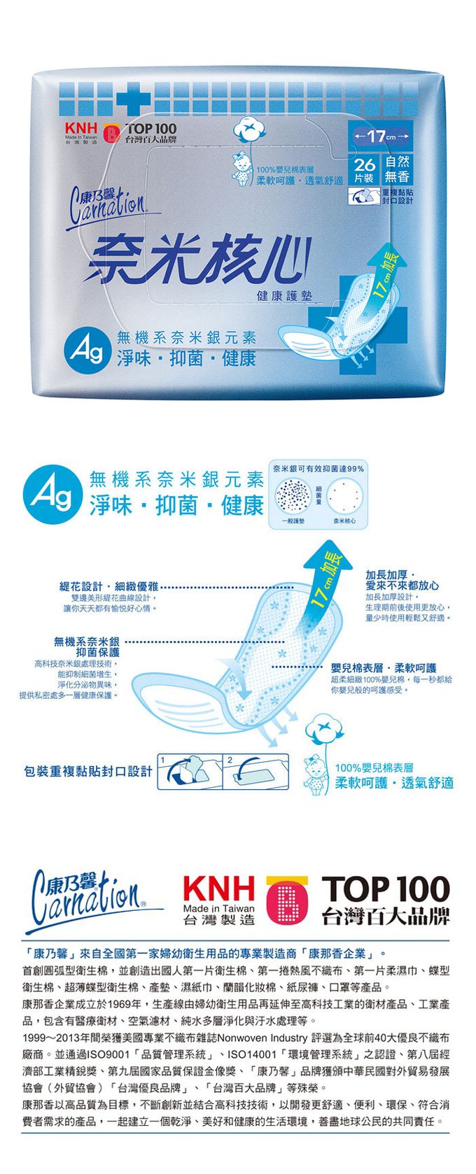 【康乃馨】奈米核心護墊加長型-無香17cm