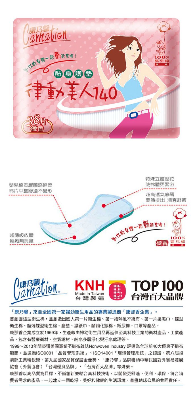 【康乃馨】律動美人護墊微香14cm