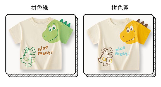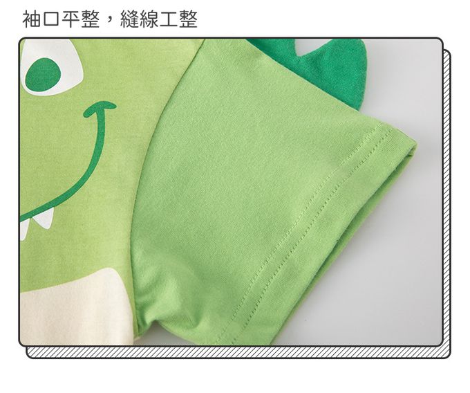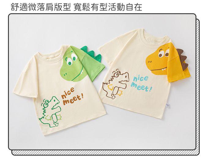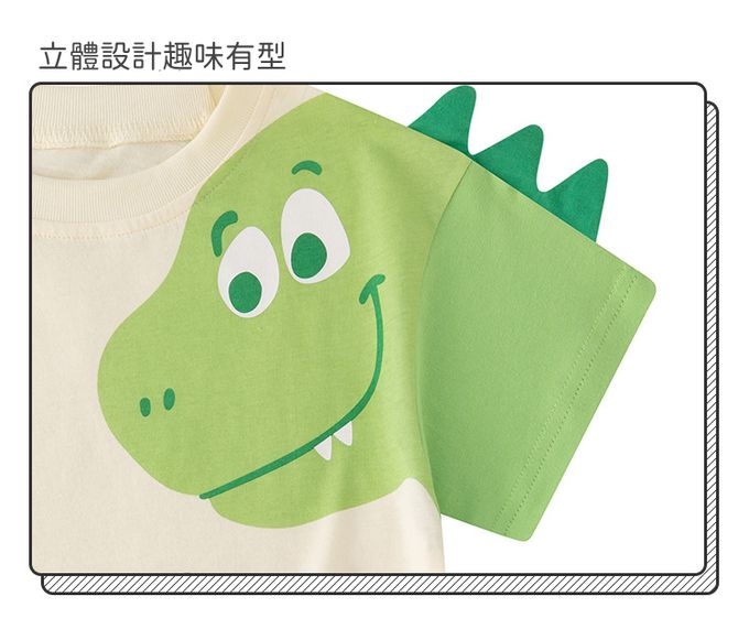 純棉立體短袖上衣-恐龍相見歡-拼色綠