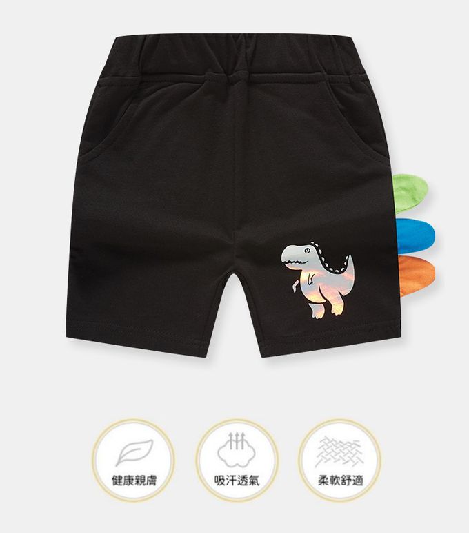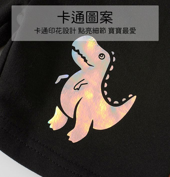 純棉立體造型休閒短褲-炫彩恐龍-黑色