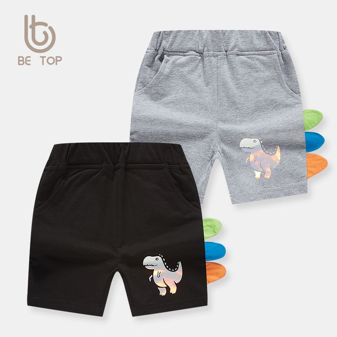 BE TOP - 純棉立體造型休閒短褲-恐龍車車-灰色