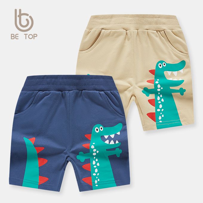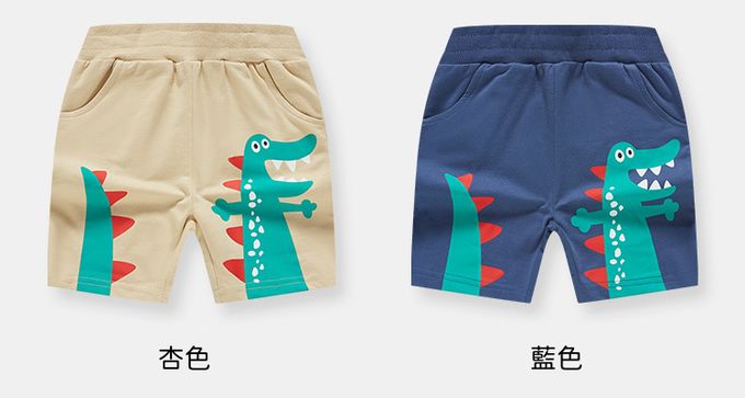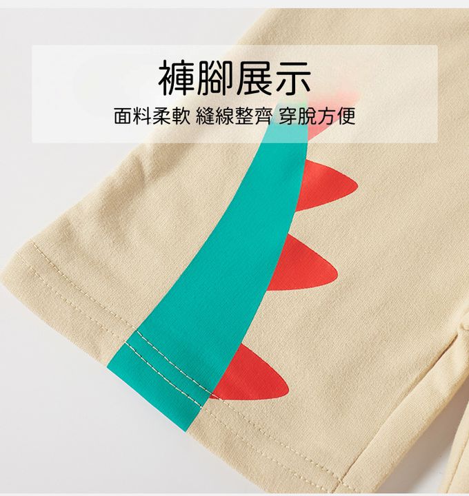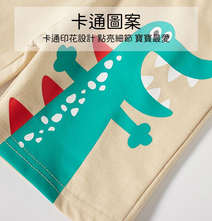 BE TOP - 純棉休閒短褲-萌趣恐龍-藍色