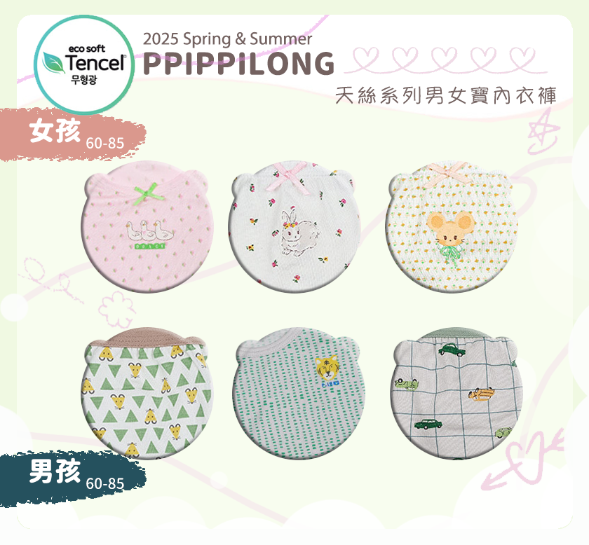 這次開團的 韓國 Ppippilong 有親膚莫代爾、透氣輕柔棉、可抗菌除臭的竹纖維等多種材質!天然材質不僅對環境友善,還能呵護寶貝嬌嫩的小屁屁~ 2-13Y 男孩女孩的三角褲、四角褲、小背心通通有,款式超多超可愛!趁跟團多買幾套替換,下雨也不怕衣服曬不乾啦~