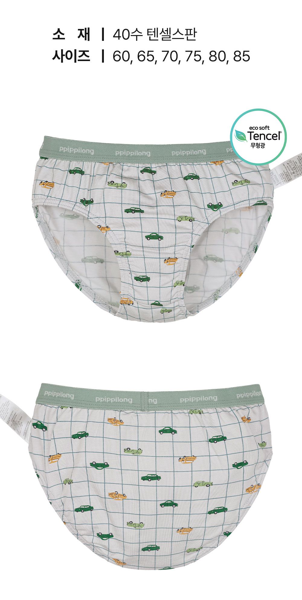 韓國 Ppippilong - 天絲纖維透氣三角褲(男寶)-方格車車-綠