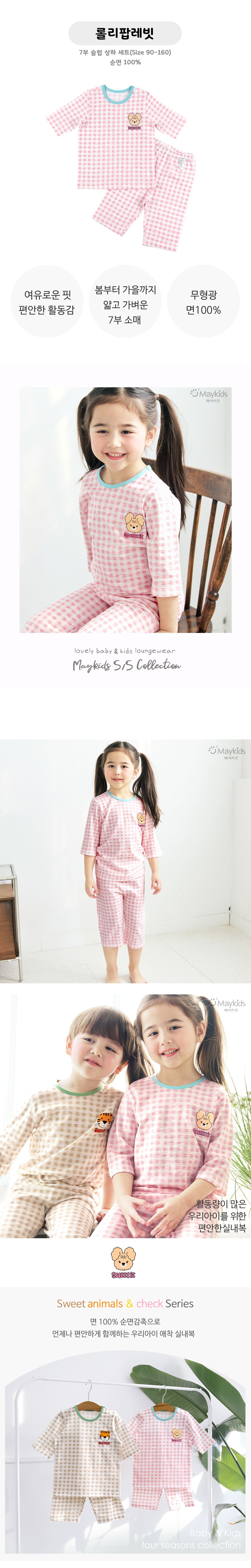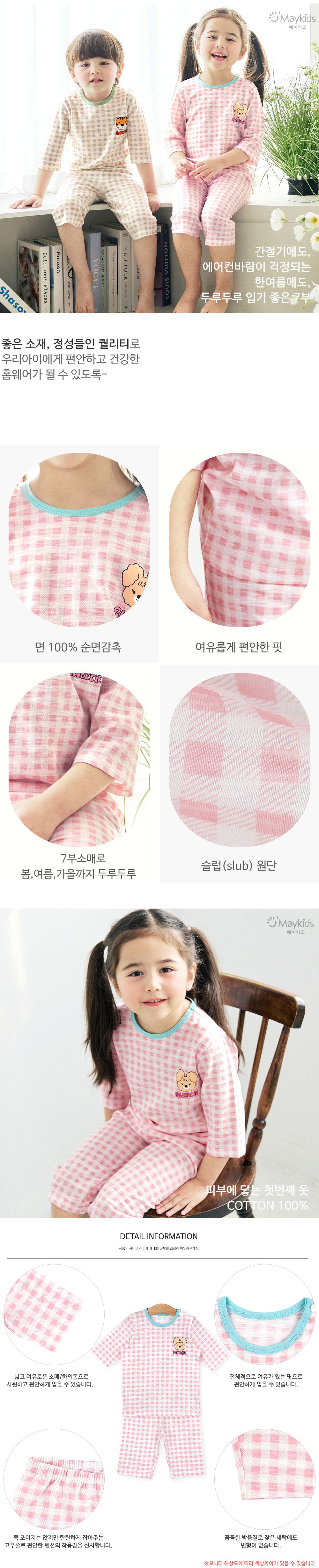 韓國 Maykids - 輕薄細柔棉七分袖家居服