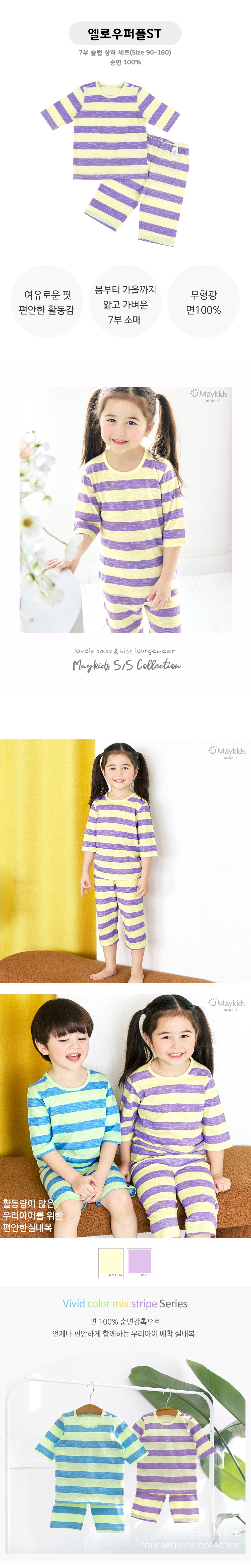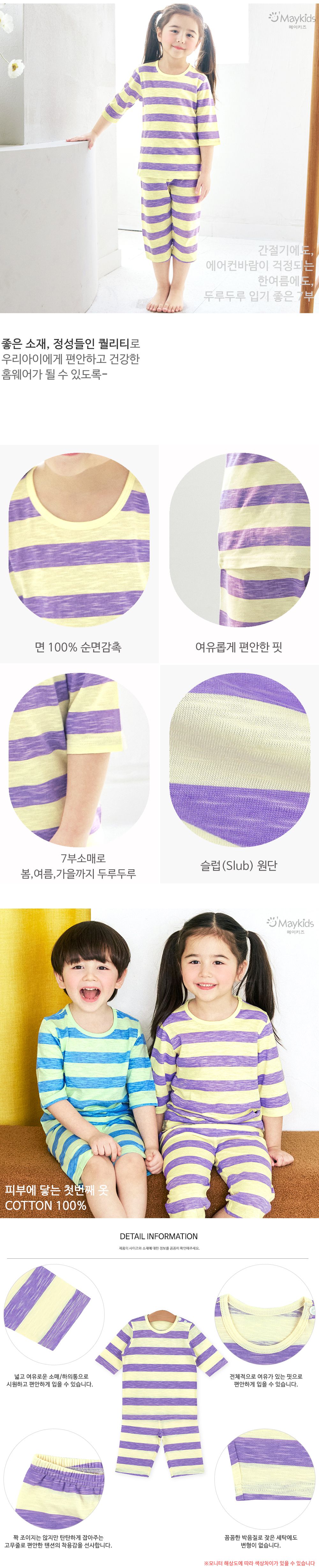 韓國 Maykids - 輕薄細柔棉七分袖家居服-寬條紋-紫X黃