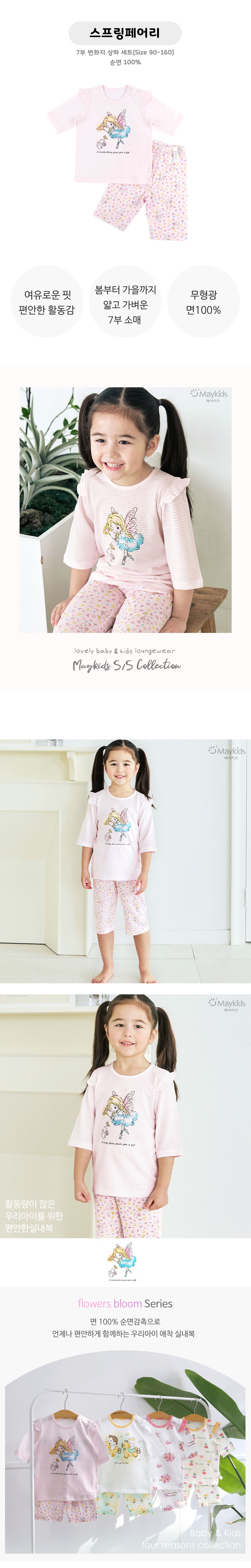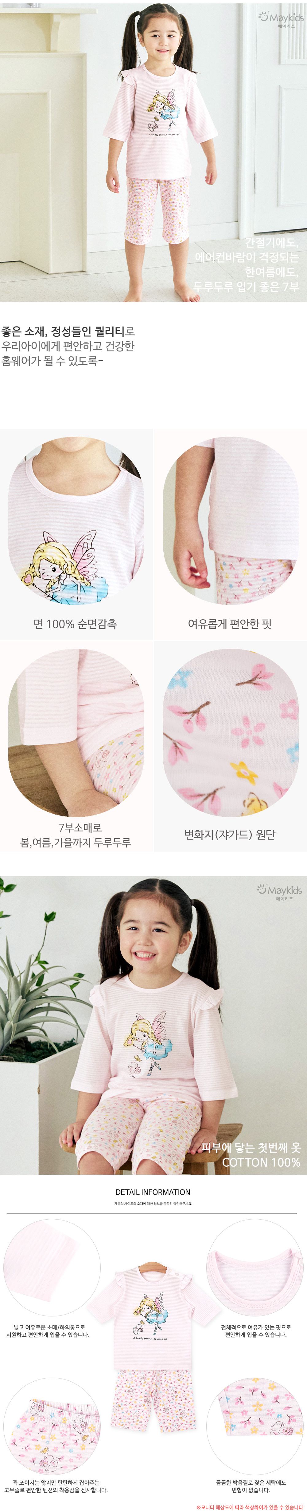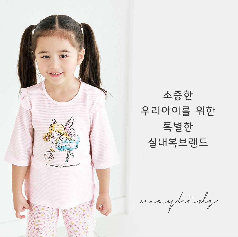 韓國 Maykids - 透氣條紋提花棉七分袖家居服-蝴蝶仙子-淡粉