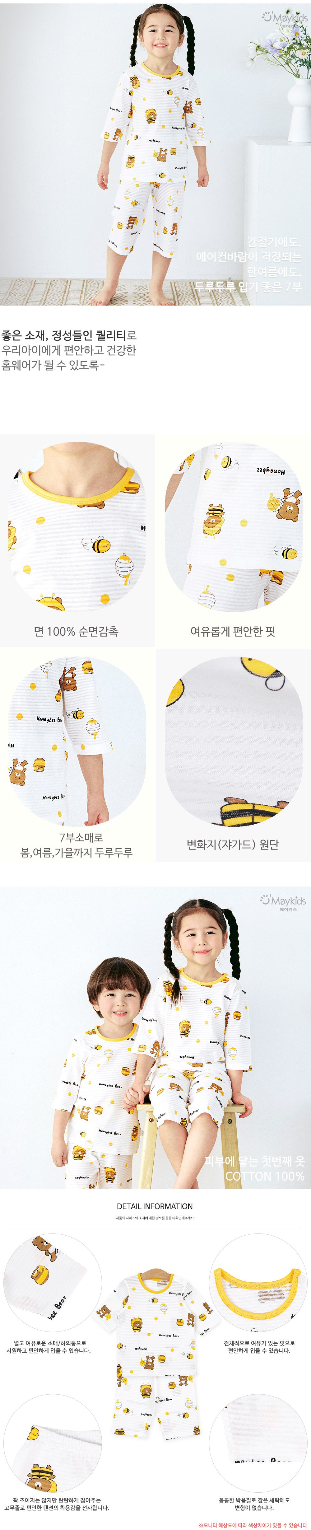 韓國 Maykids - 透氣條紋提花棉七分袖家居服-蜜蜂熊熊