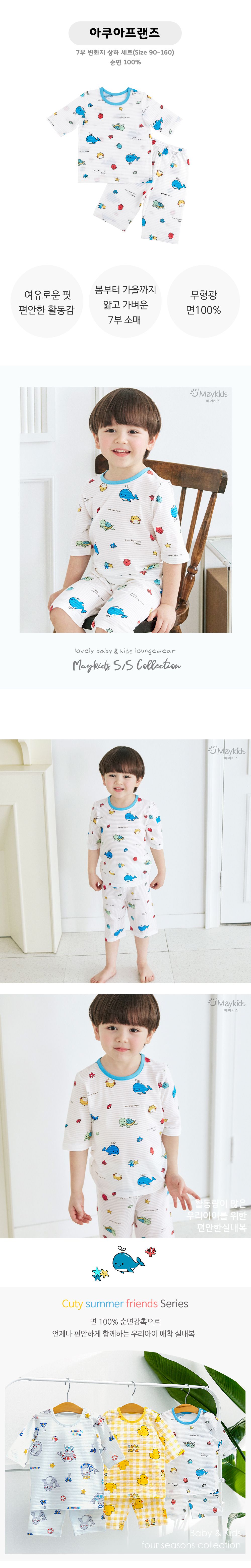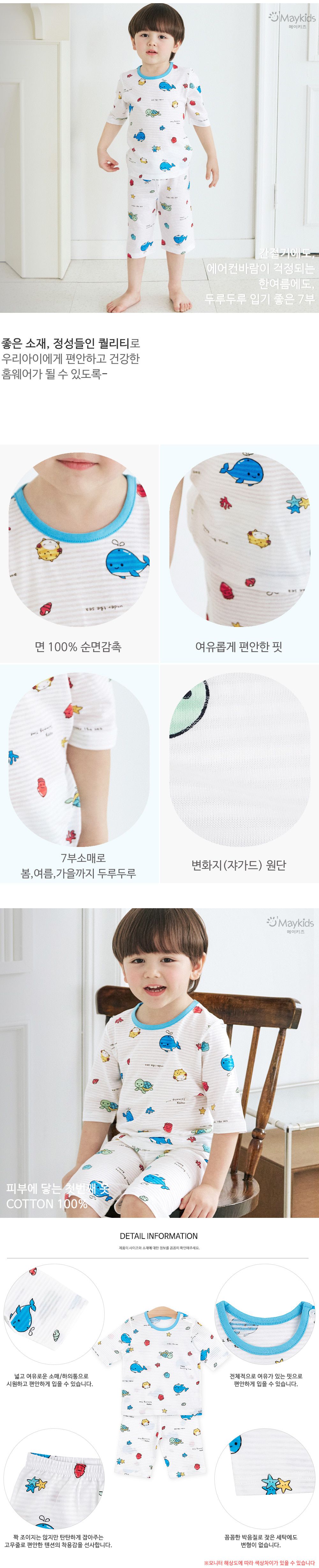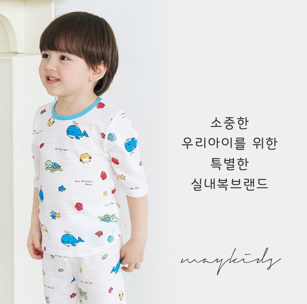 韓國 Maykids - 透氣條紋提花棉七分袖家居服-水族館