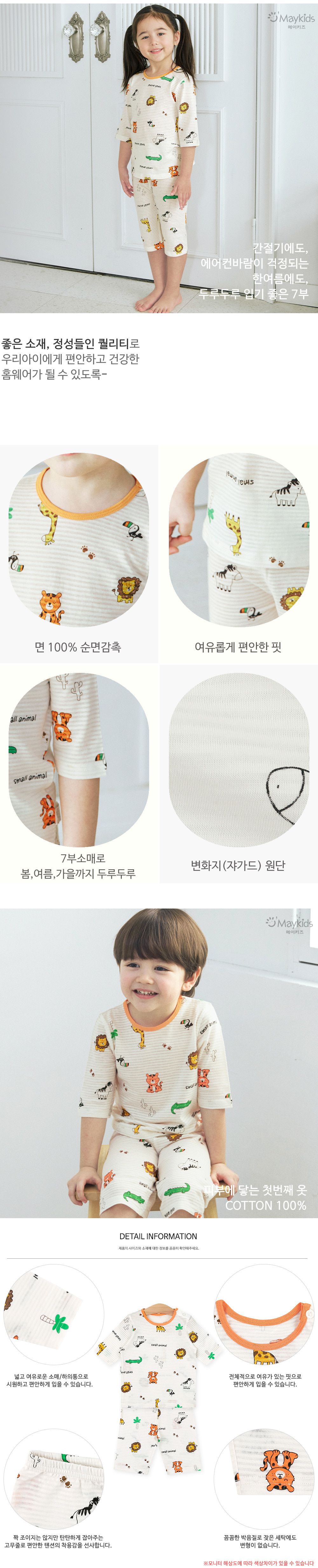 韓國 Maykids - 透氣條紋提花棉七分袖家居服-萌萌非洲動物