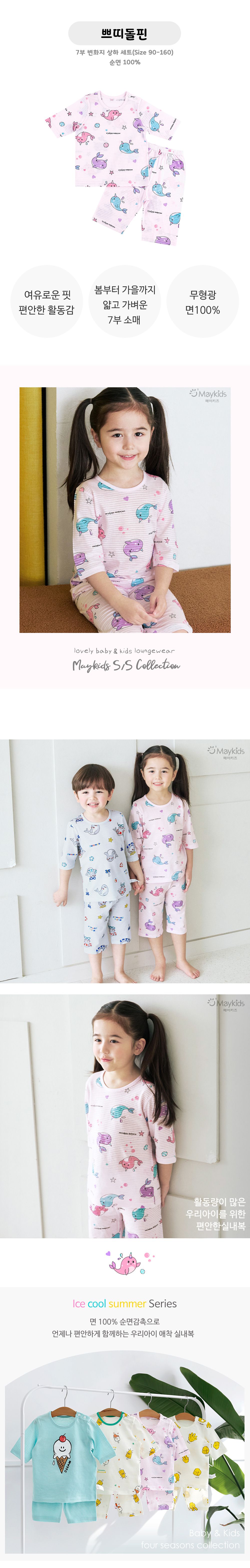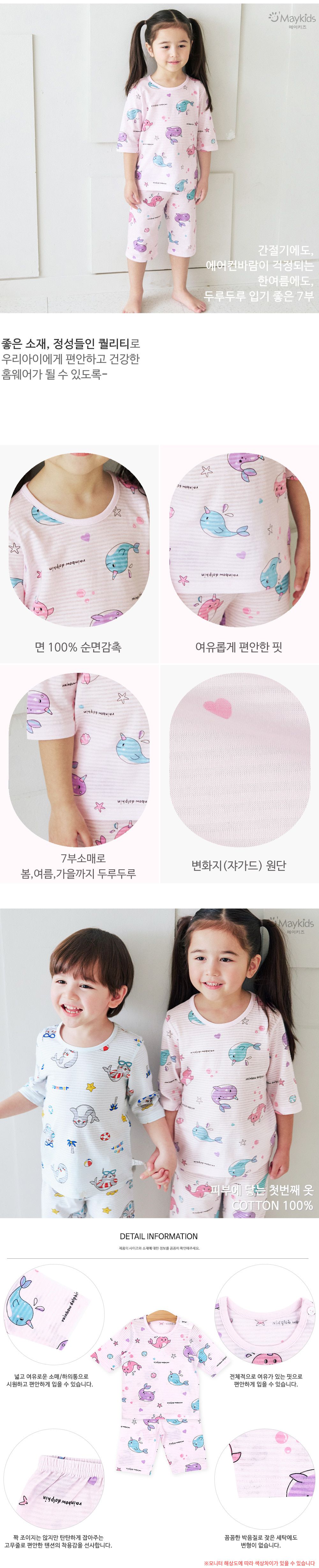 韓國 Maykids - 透氣條紋提花棉七分袖家居服-夢幻海豚-淡粉