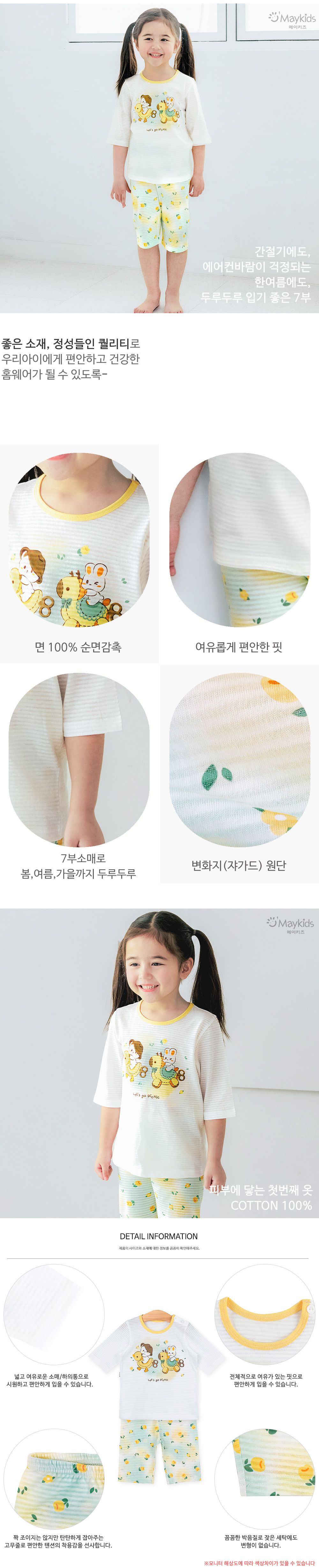 韓國 Maykids - 透氣條紋提花棉七分袖家居服