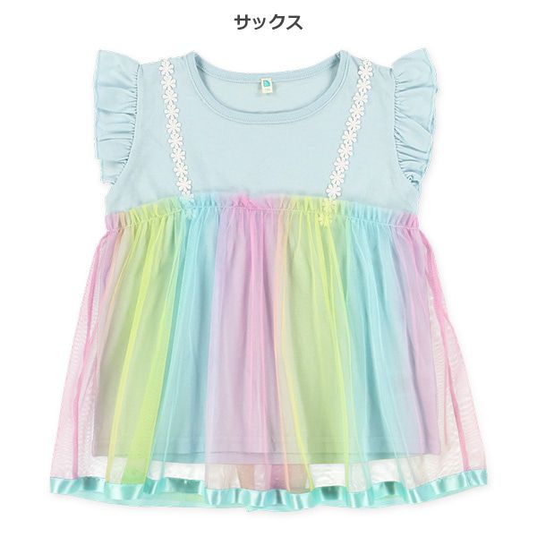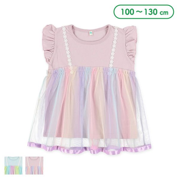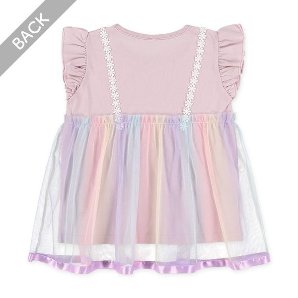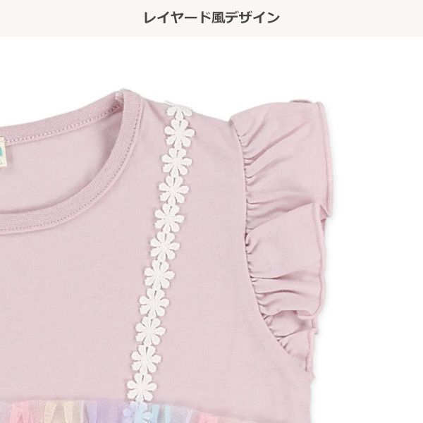 ![日本西松屋 - 華夫格異素材絲帶長袖上衣-白x藍紫]()
