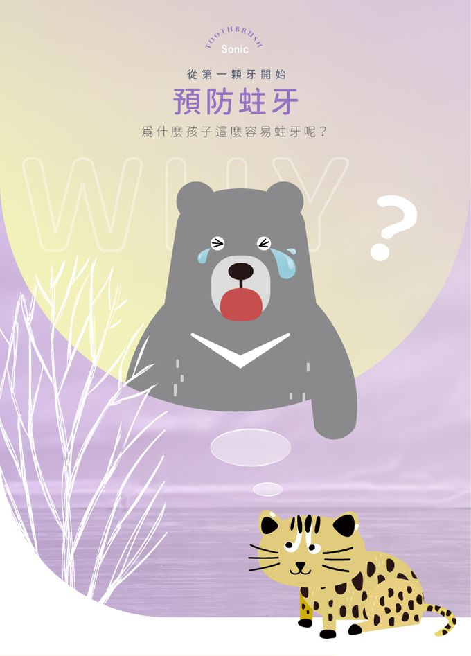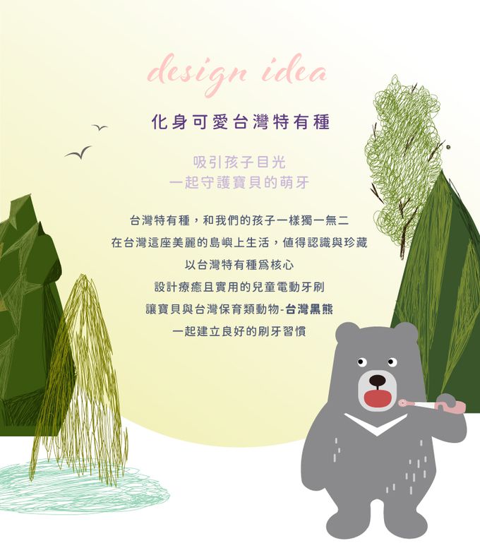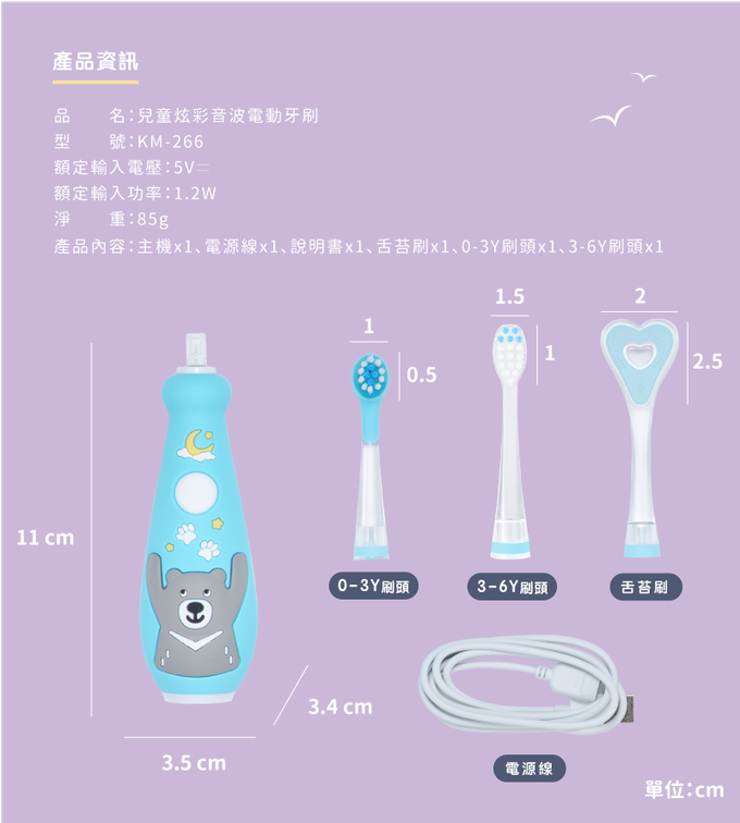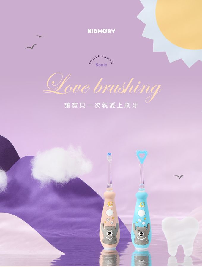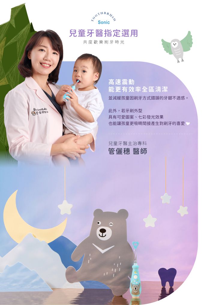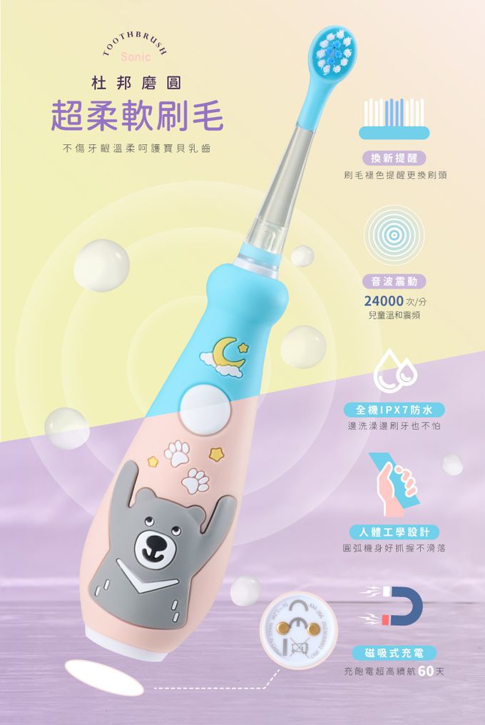 兒童炫彩音波電動牙刷 KM-266-藍黑熊/粉黑熊