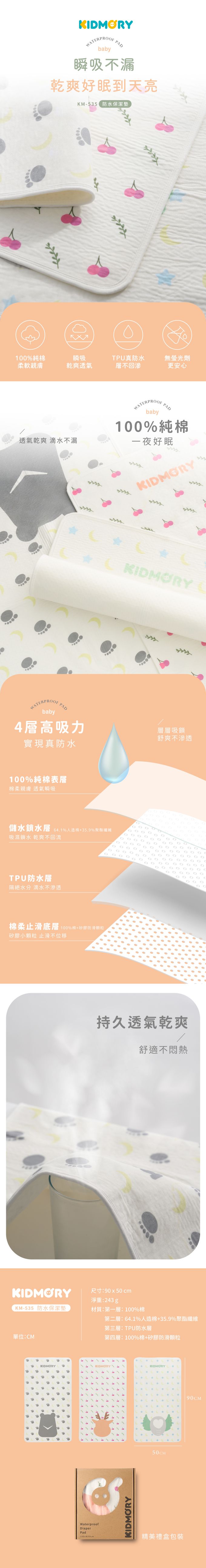 材質:>第一層:100%棉 >第二層:64.1%人造棉+35.9%聚酯纖維 >第三層:TPU防水層 >第四層:100%棉+矽膠防滑顆粒