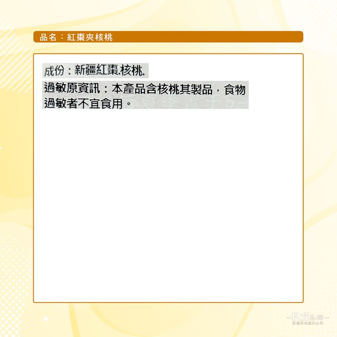 過敏原:本產品含核桃其製品,食物過敏者不宜食用。