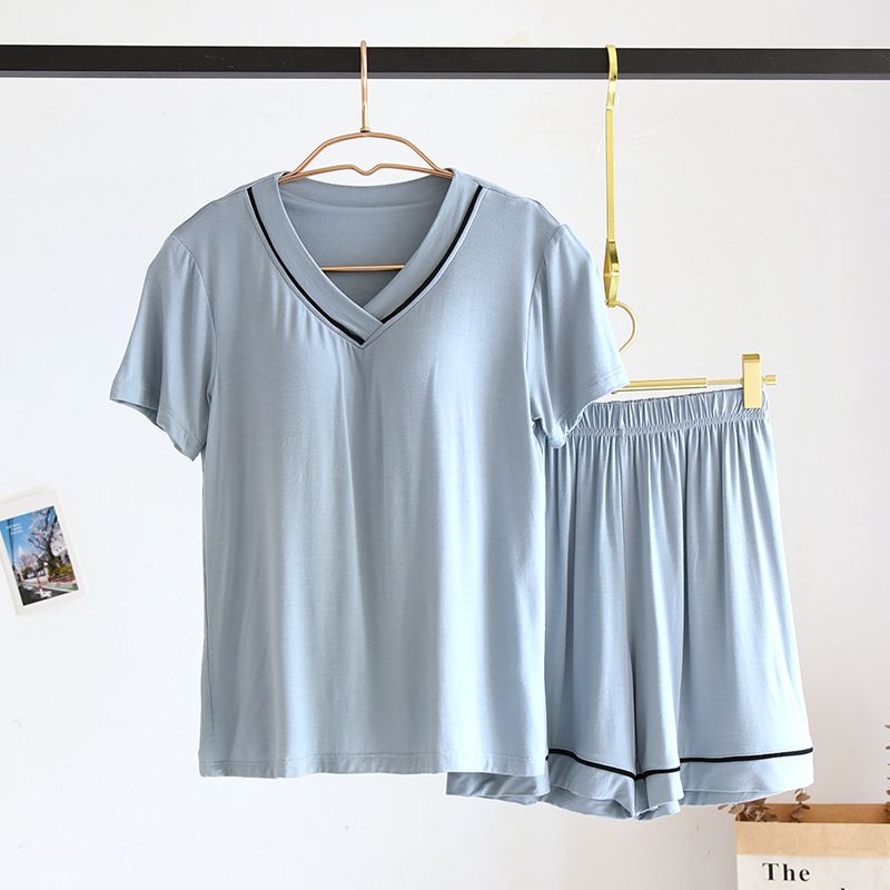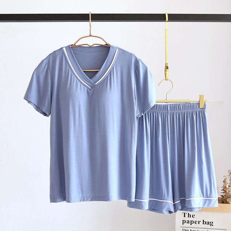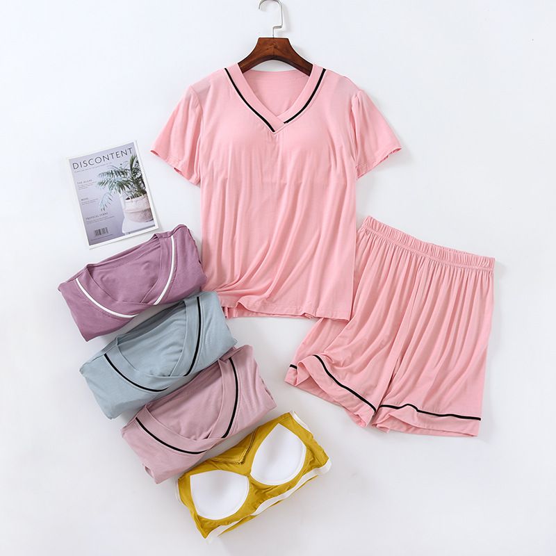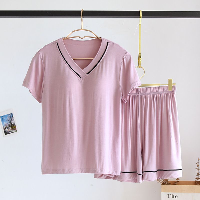 莫代爾涼感Bra T家居服套裝-短袖+短褲-紫色