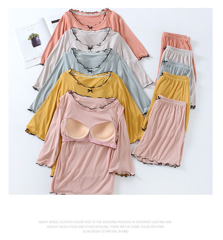 品名:莫代爾涼感Bra T荷葉邊家居服套裝