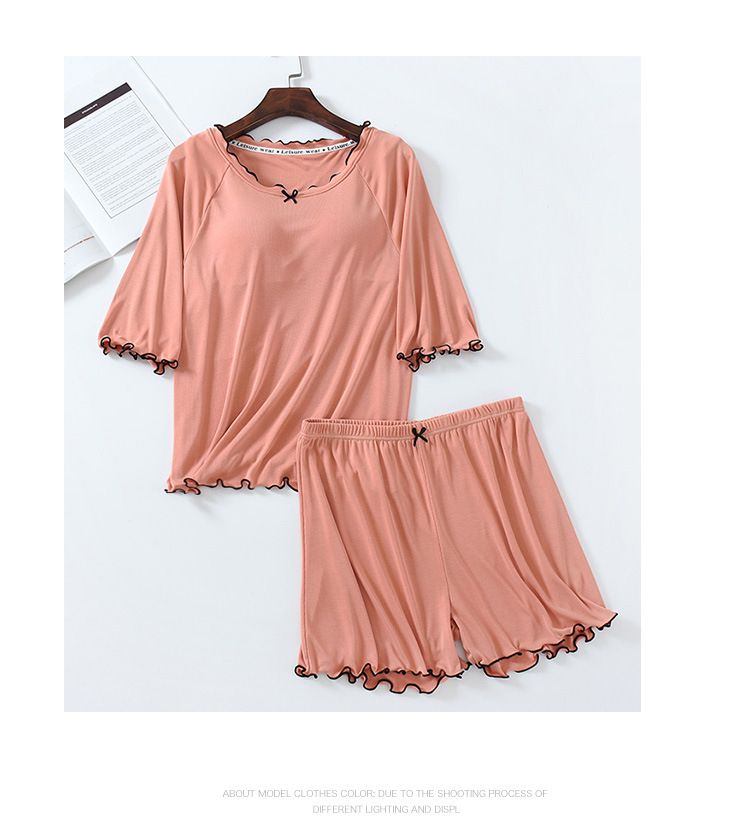 莫代爾涼感Bra T荷葉邊家居服套裝-短袖+短褲-橘粉色