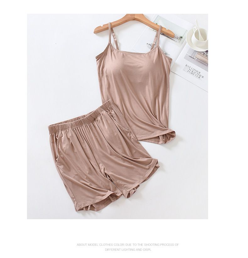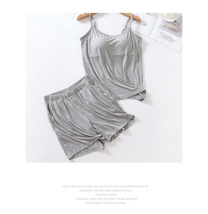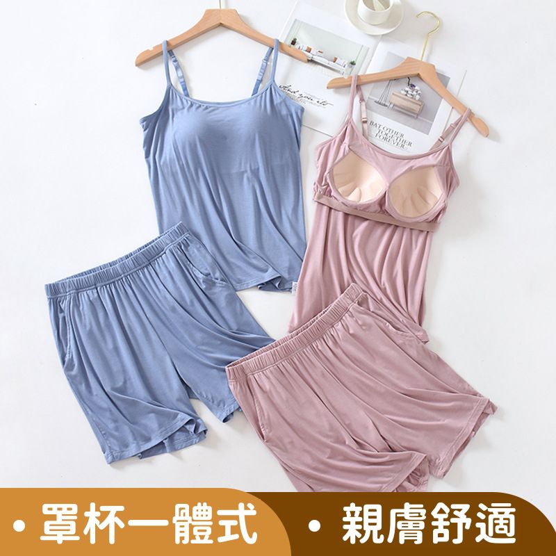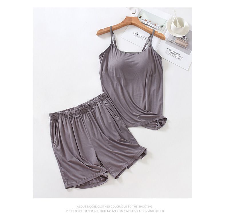 莫代爾涼感Bra T家居服套裝-細肩帶背心+短褲-黑色