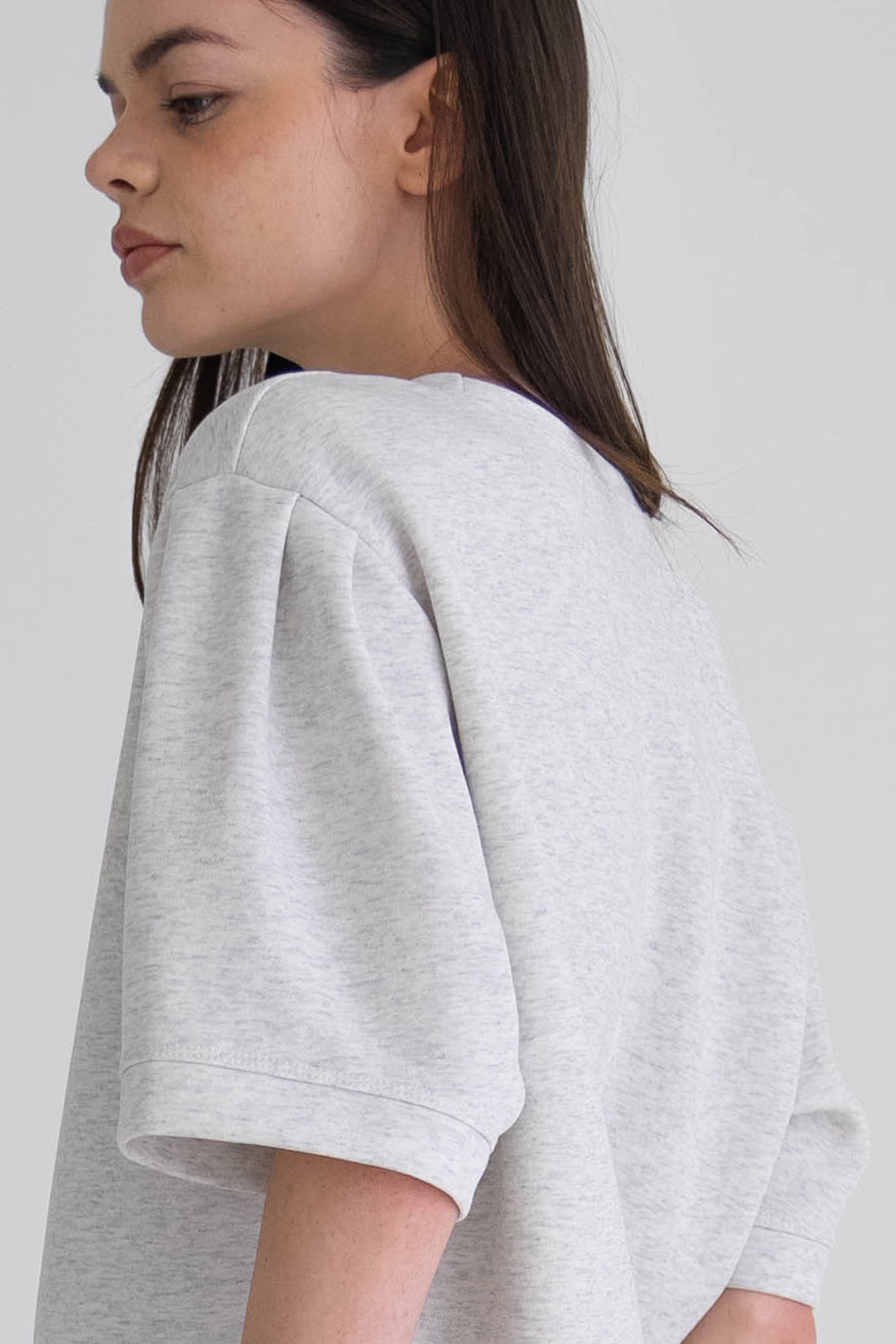 • 微落肩五分線x肩線抓皺設計,可修飾肉肉