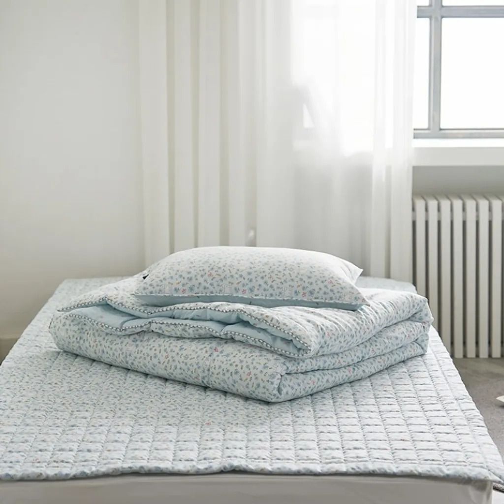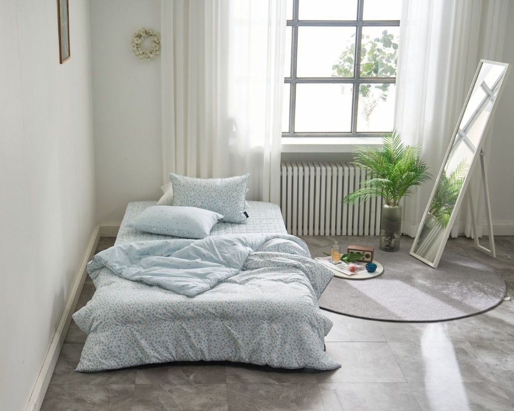 傳統被子填充都偏厚重!夏天只蓋一點點容易一翻身就著涼,冬被厚厚一層蓋上去彷彿中了定身咒 OTZ 總是有一種被束縛著的感覺,睡覺也好有負擔啊!但韓國被子普遍輕盈、觸感手感都很好,不怕不好翻身。
