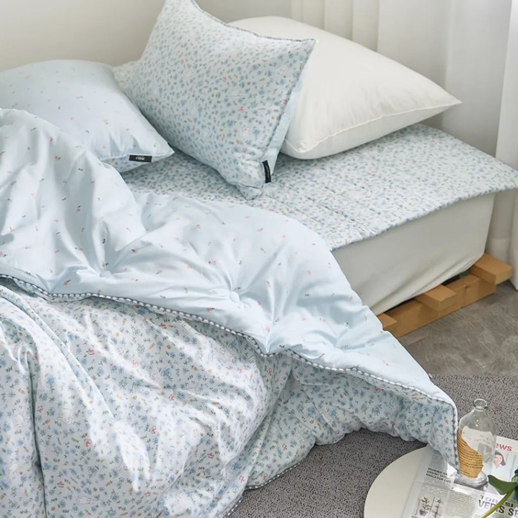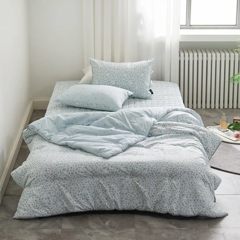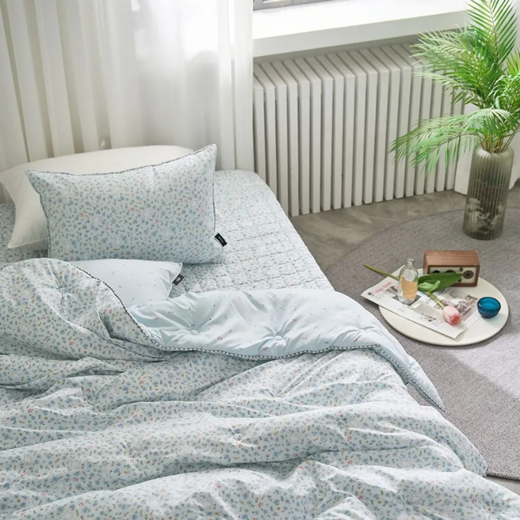 台灣的被子多是被胎+被套這樣的形式;會這樣設計是因為以前棉質填充不太好洗(不快乾),亦或是羽絨被不能水洗,只好採這樣的形式,只洗被套!但韓國棉被現在都已經改聚酯纖維/玉米纖維填充,不僅能水洗,還快乾!也比傳統棉被更加輕盈~